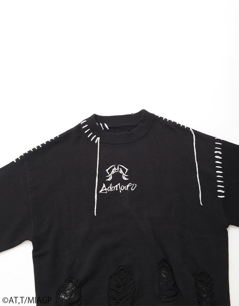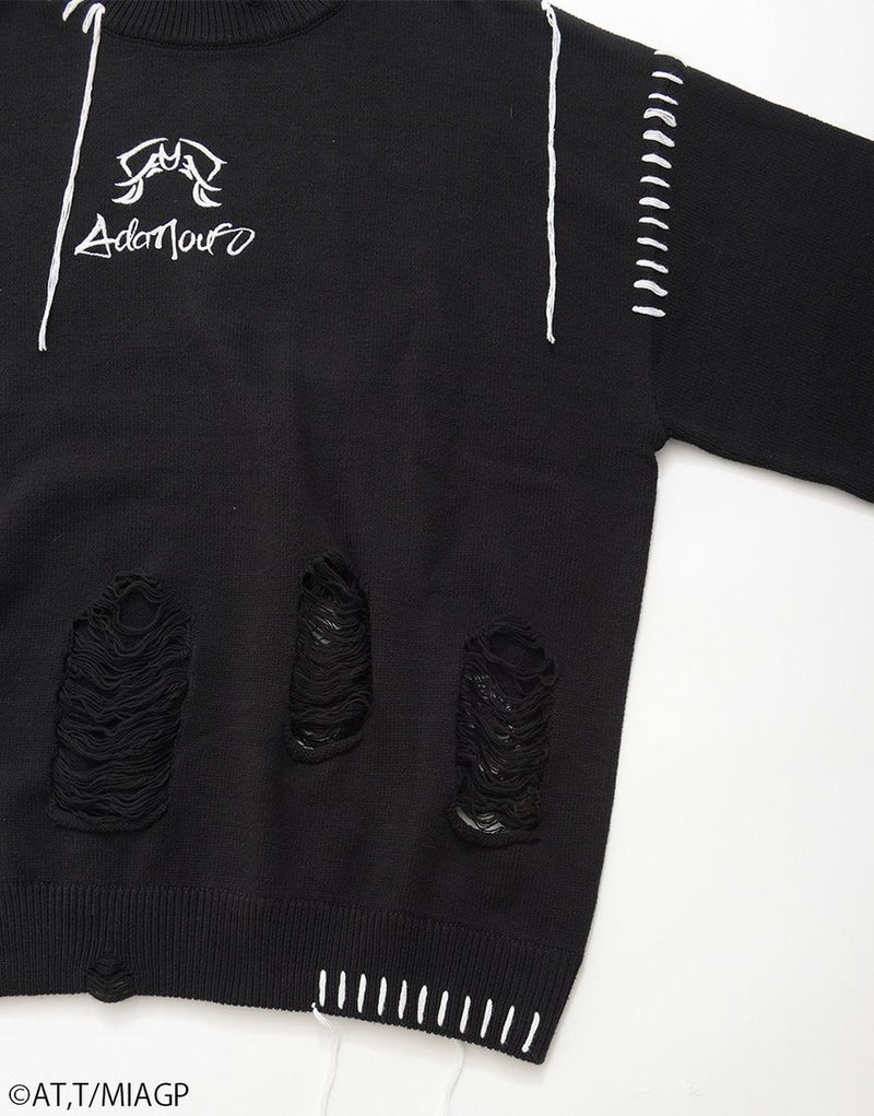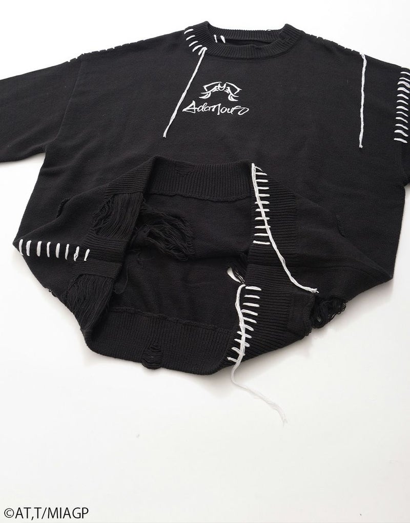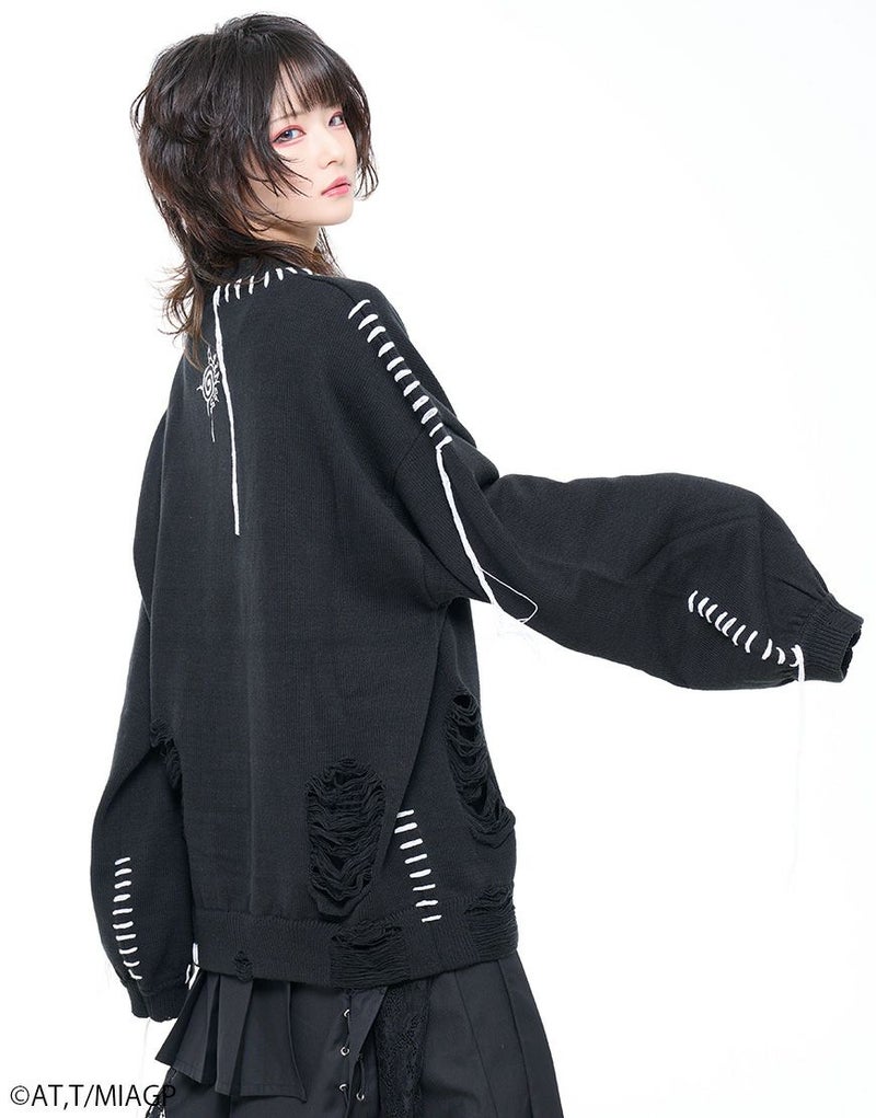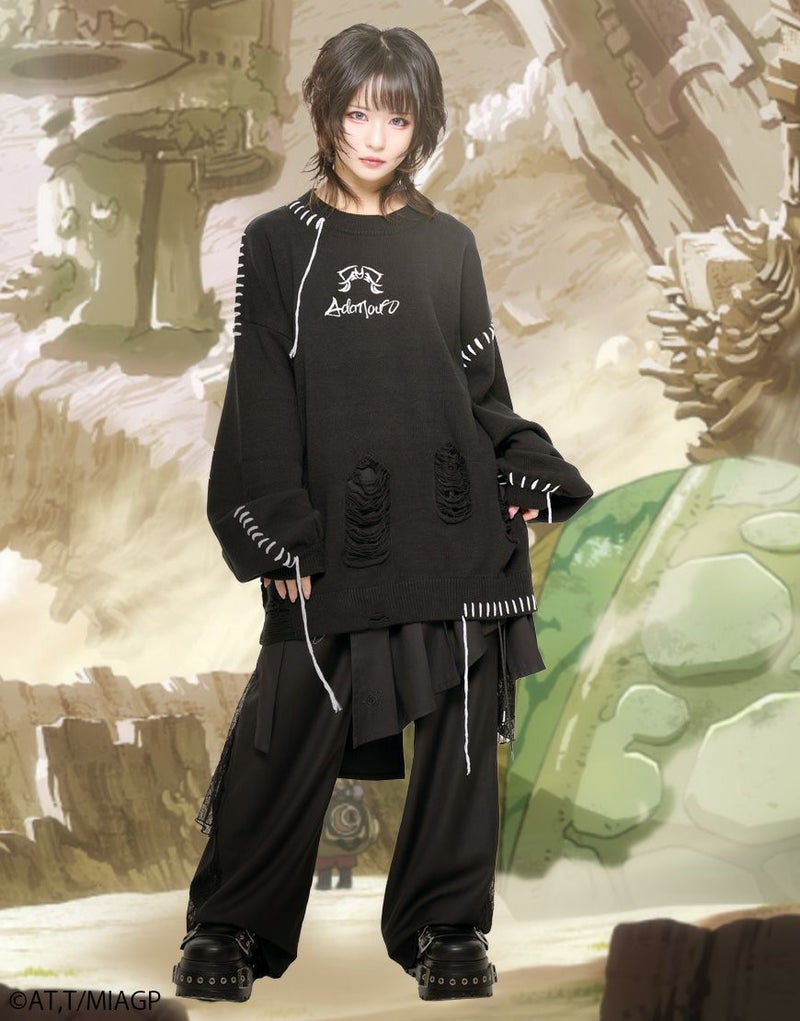 ボディ全体にはブロークン編み加工を施し、ほつれたようなディストーションが儚さと強さを併せ持ちます。