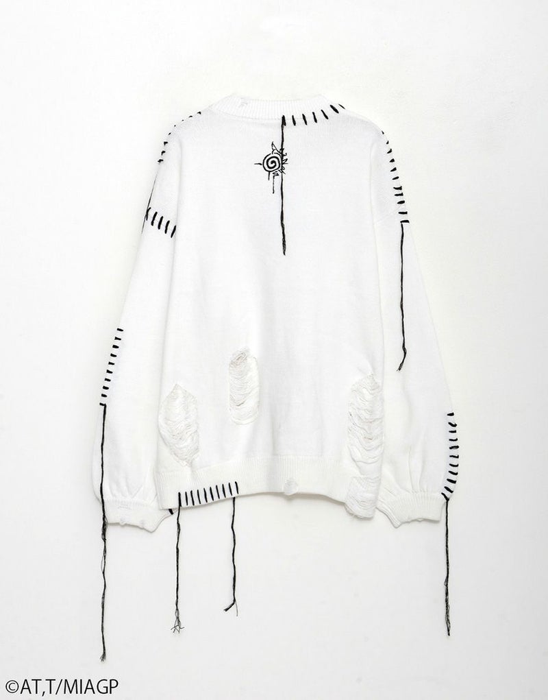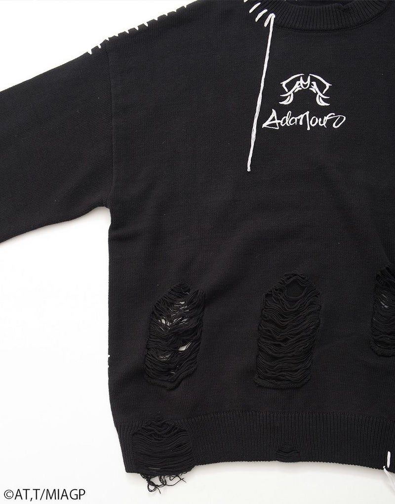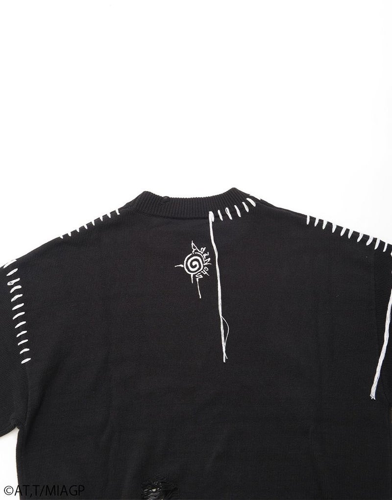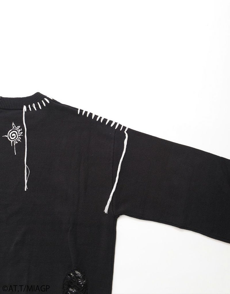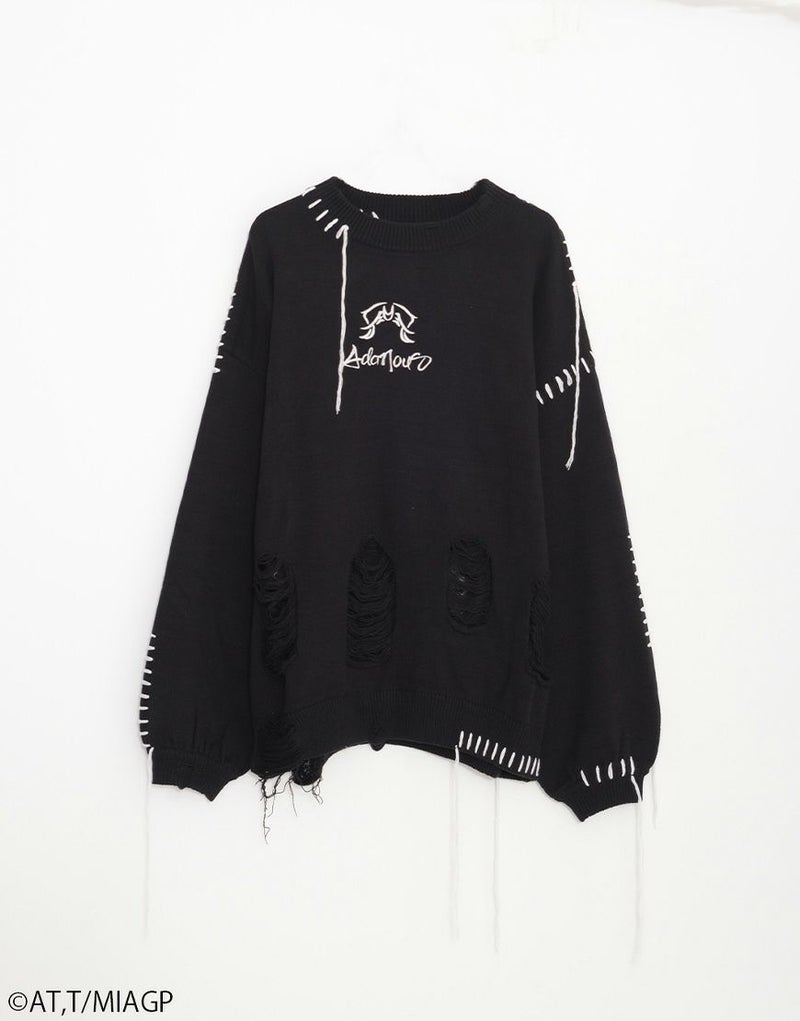 ボディ全体にはブロークン編み加工を施し、ほつれたようなディストーションが儚さと強さを併せ持ちます。