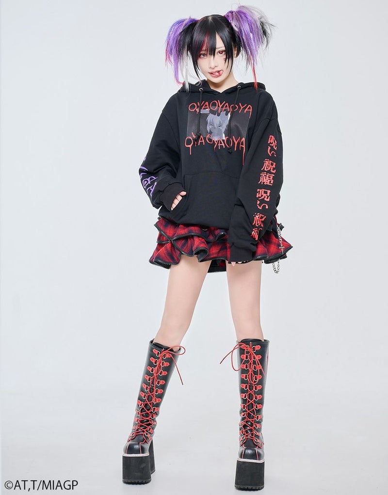 Grrr the Lipperによるダークなビジュアル表現が際立つプルオーバーフーディー。