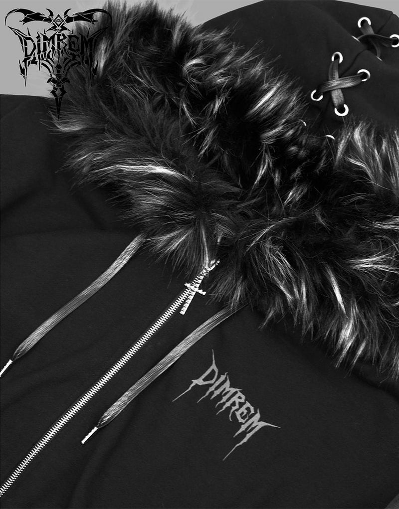 DIMREM【ディムレム】超ハトメファーフードパーカー/Black