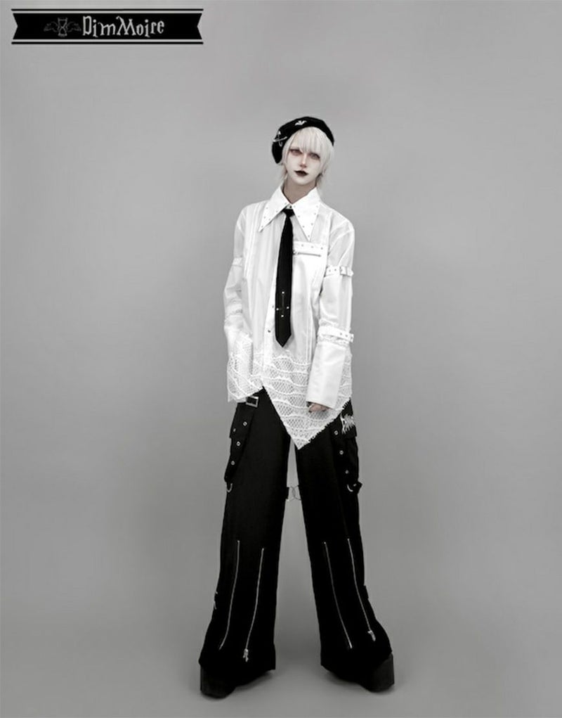 スタッズ、ベルトなどパンクっぽさも取り入れながら、逆さ十字付きのネクタイでGothicにキメられます.