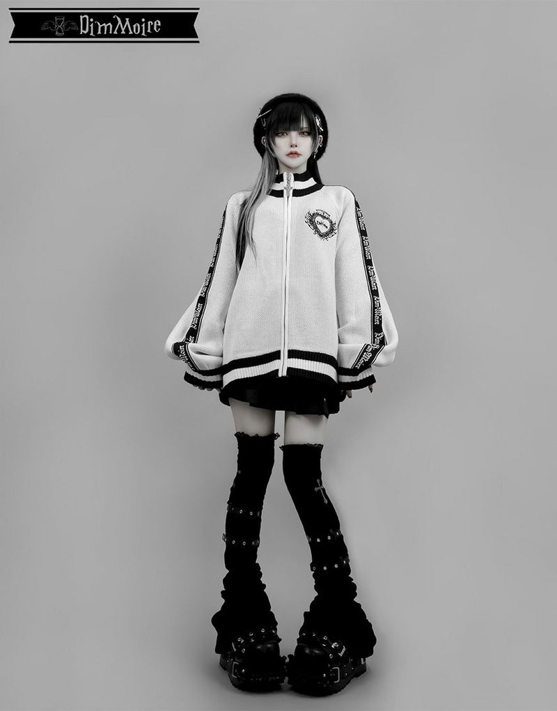 胸元にはDimMoireロゴ、袖にはDimMoireジャガードテープ.