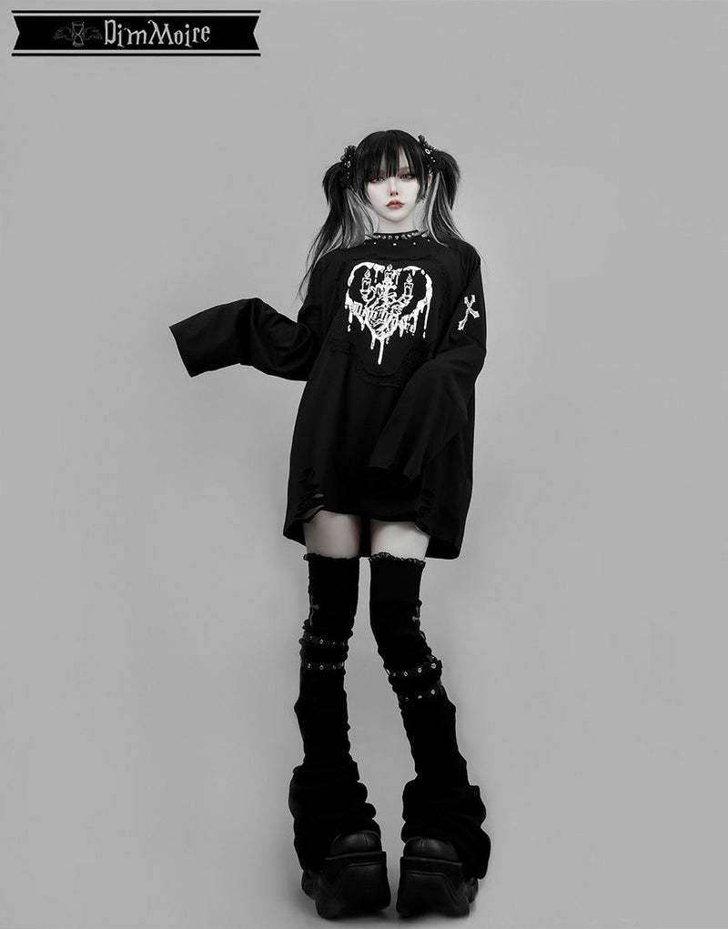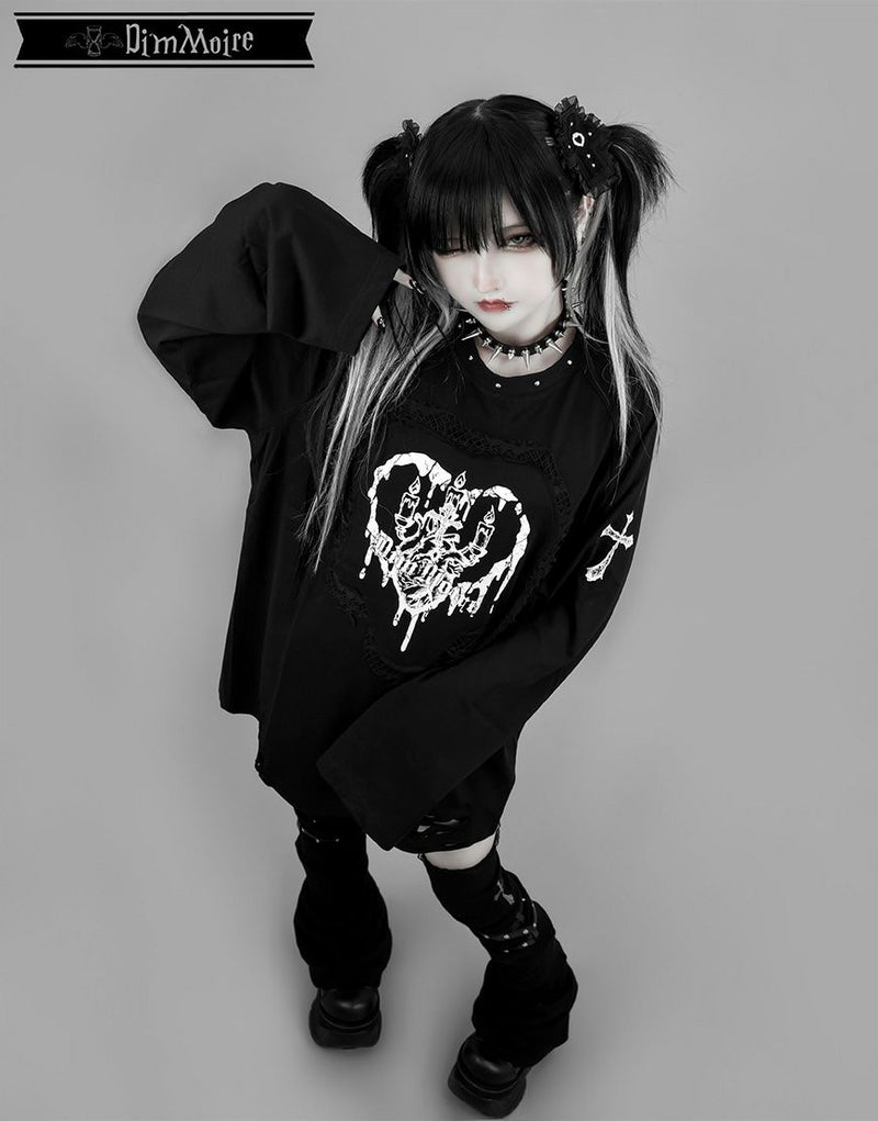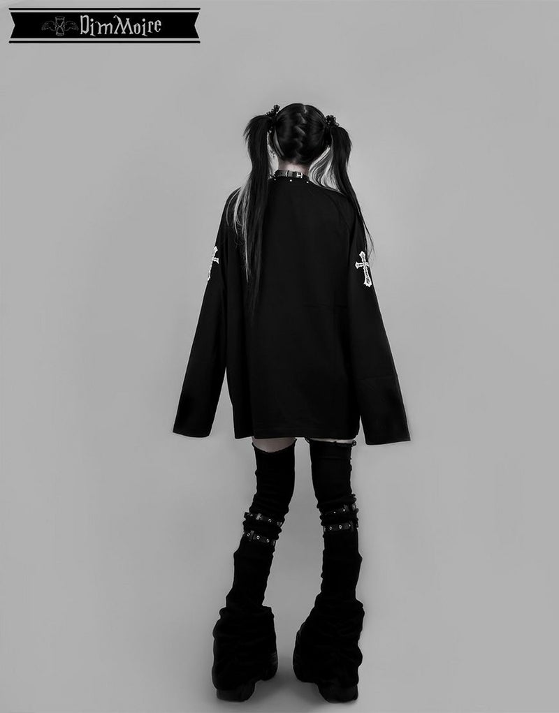 両袖に刻まれた十字架、首元のスタッズがDimMoireらしいスタイルを完成させます