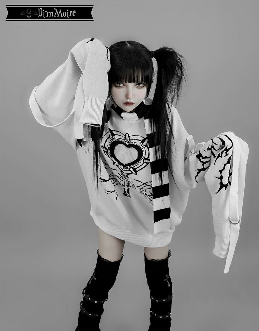 DimMoire【ディムモアール】GLOOMY×DimMoire グル~ミ~いたずらニット/White