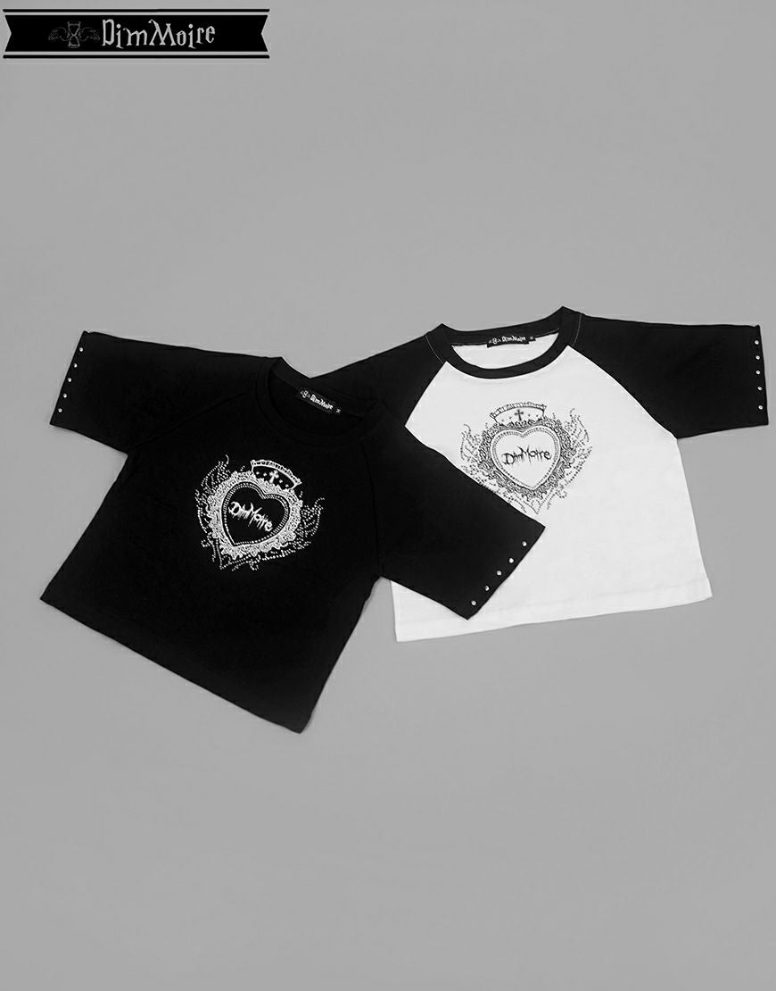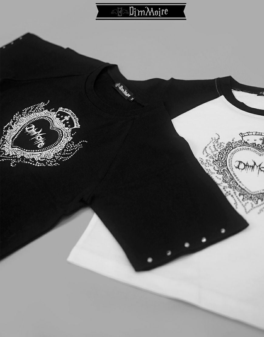 DimMoire【ディムモアール】ラインストーンHeartCoreミニT/Black×White