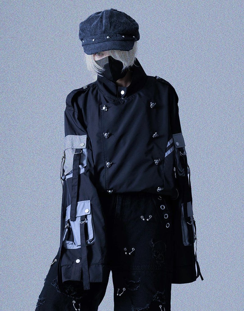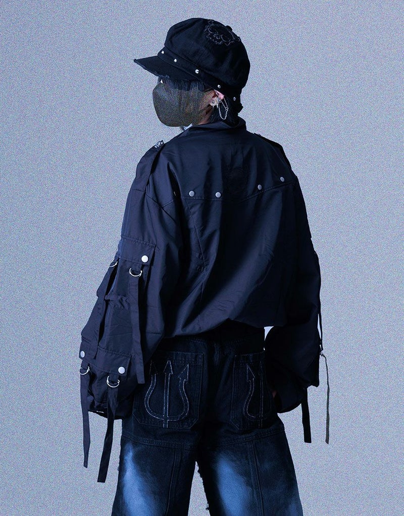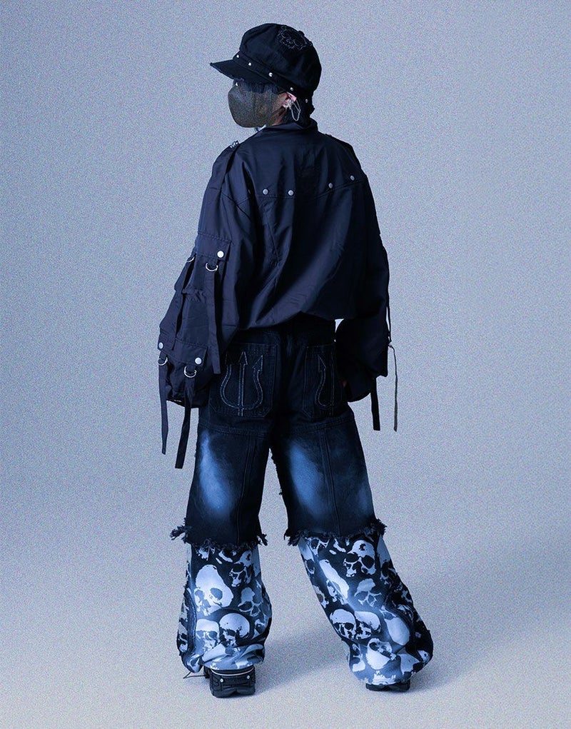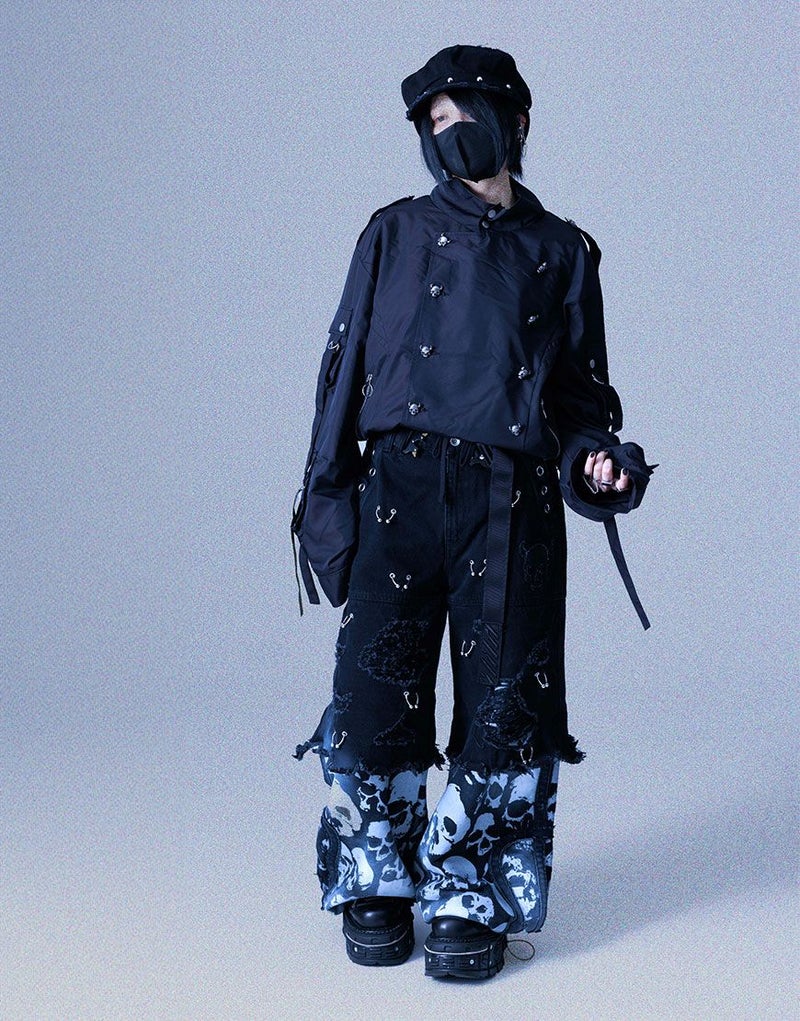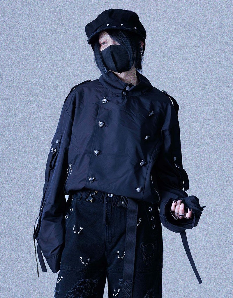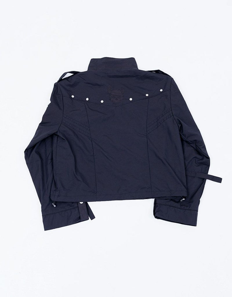 フロントと肩はブランドオリジナルスカルボタンを使用。後見頃ヨーク部分に本体どくろパッチアートワークを配置。拘りのディテールで表現したブランドらしいデザインとなっています。