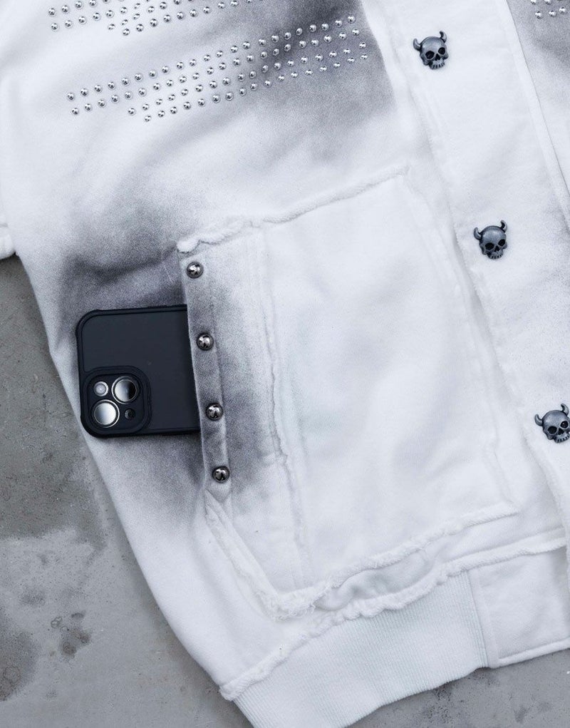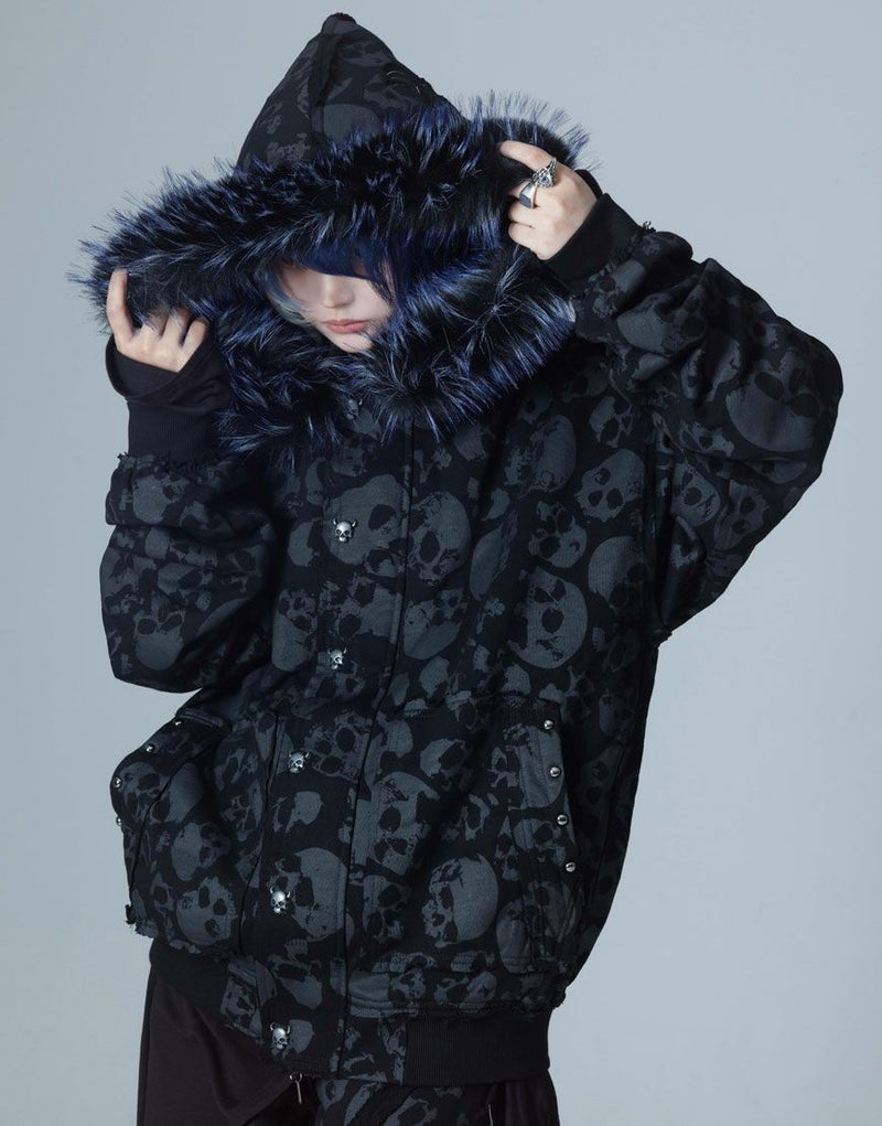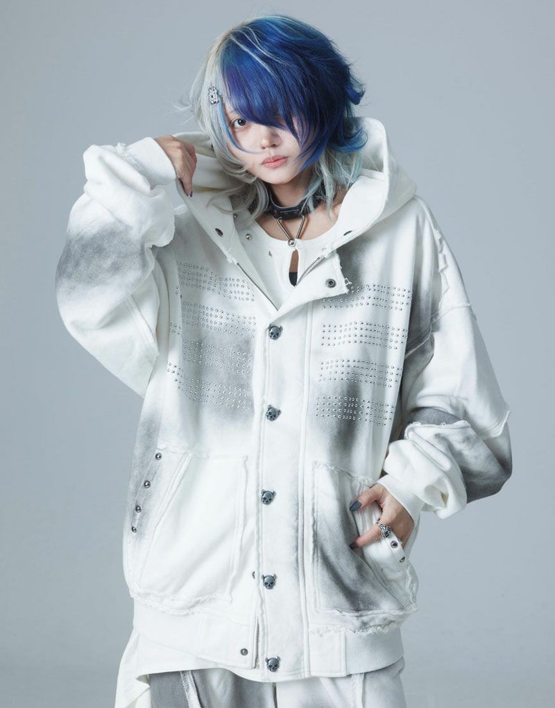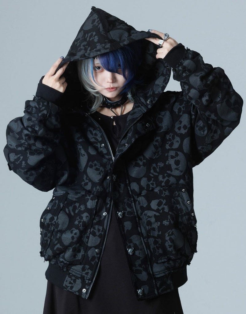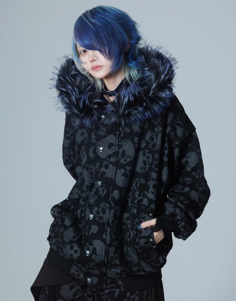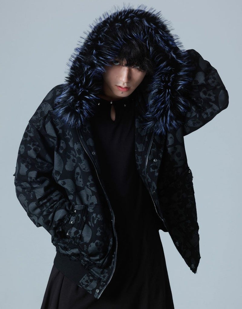 フロントはジップに加えて、スカルボタンを並べた前立て付きの二重構造。ハードさと立体感が加わり、より“ガムチュらしい”迫力のある胸元へ。