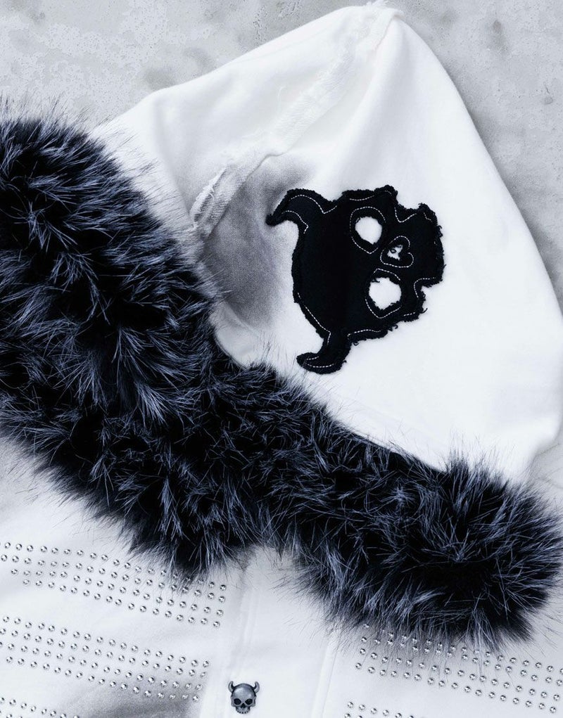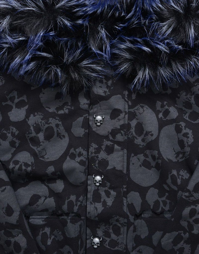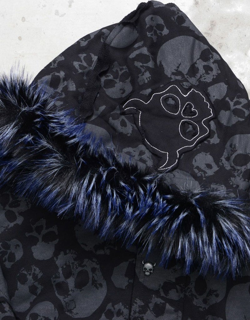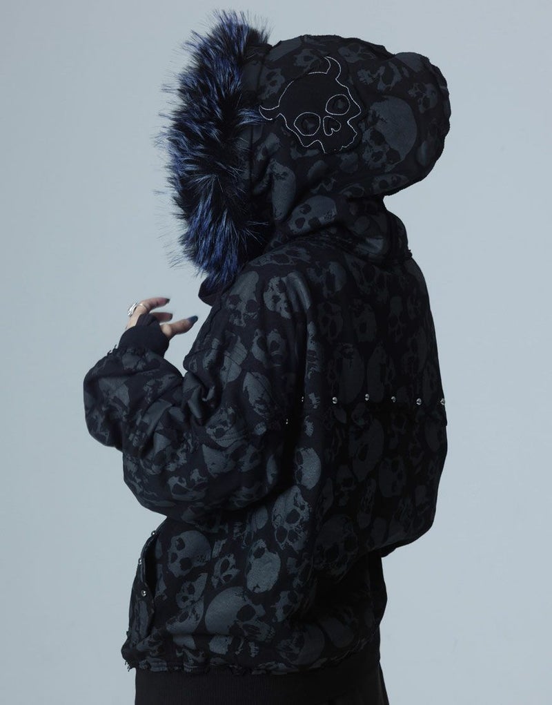 左フードには存在感のあるスカルパッチを配置し、どの角度から見ても抜かりのないデザインに。