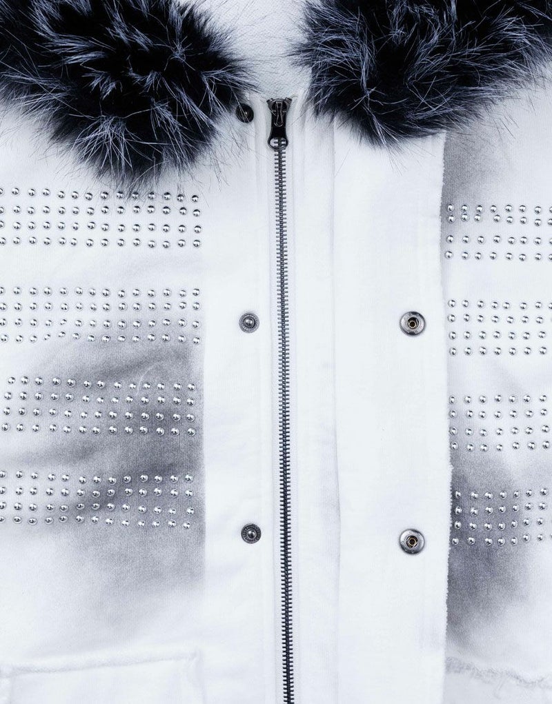 ふわりと広がるボリュームファーは脱着可能で、シーンに合わせてスタイルを変化。