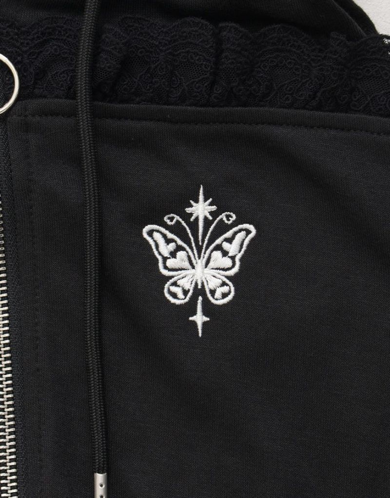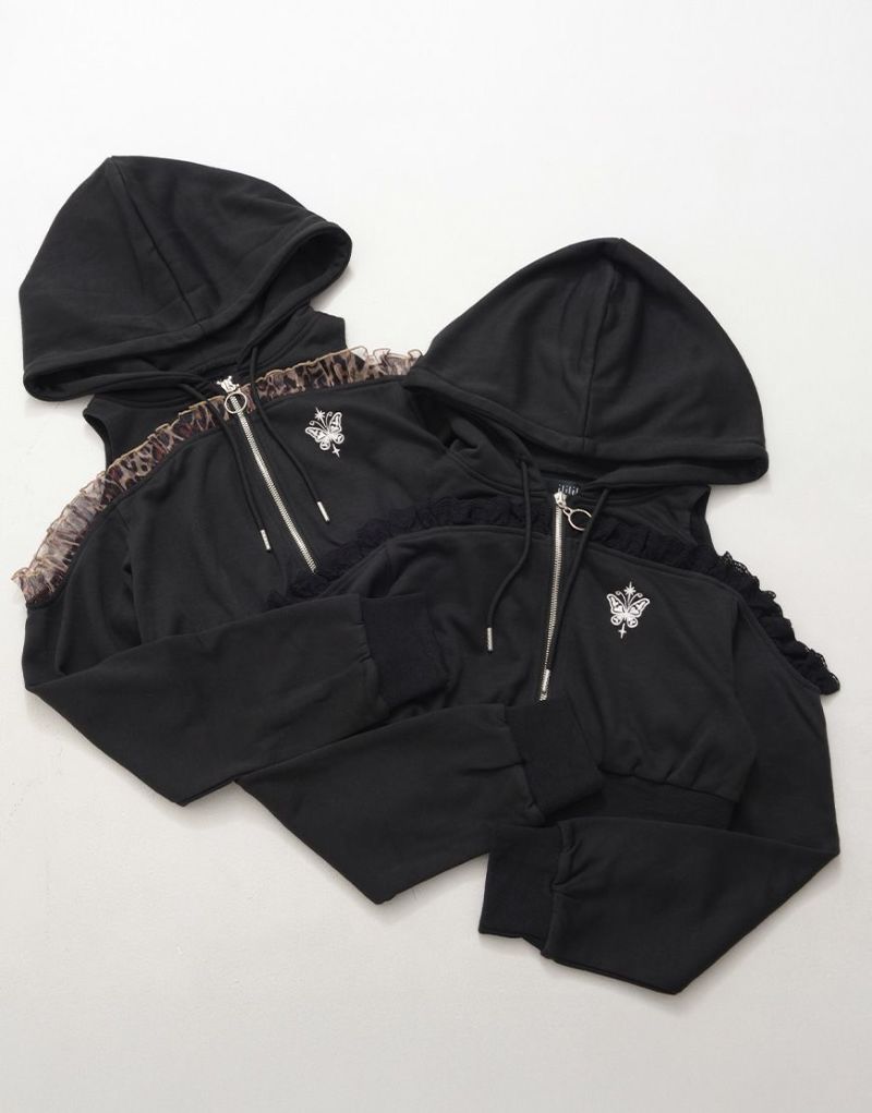 パーカー:肩あき×フリル 胸元ワンポイント刺繍♪ ショート丈で脚長効果◎