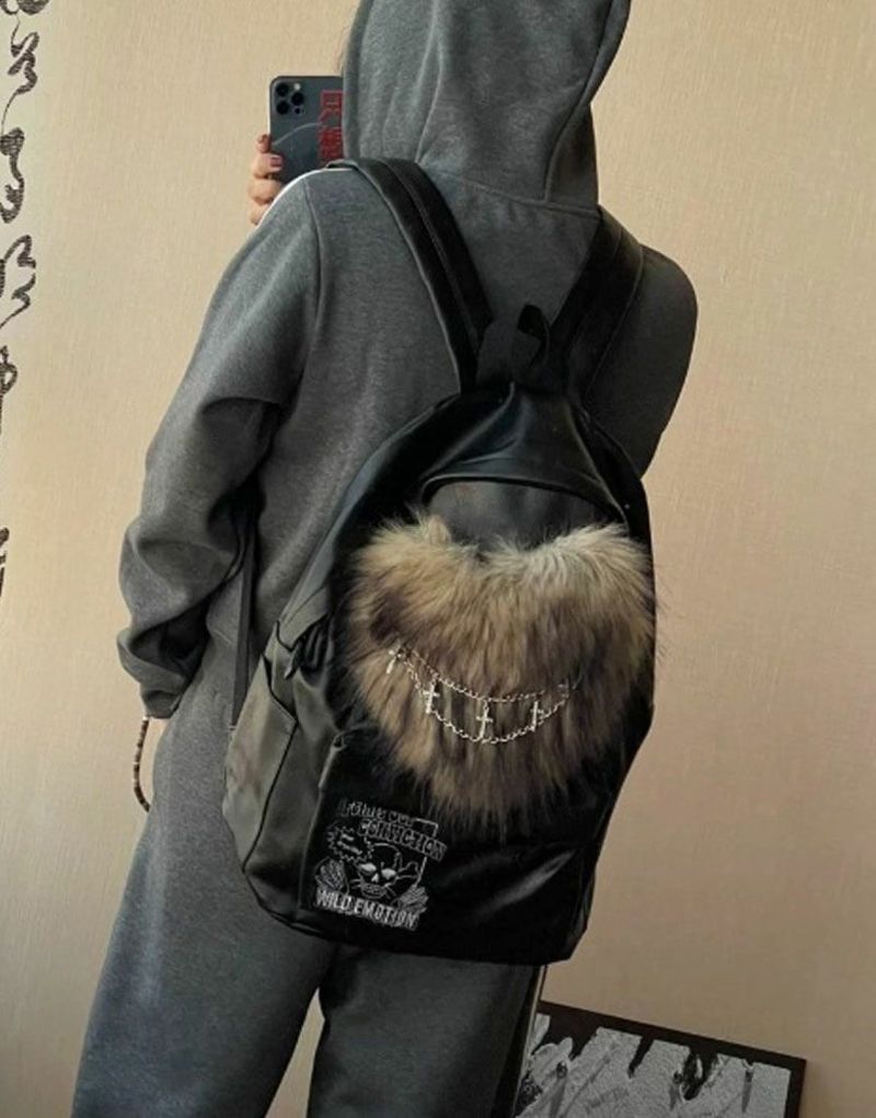 ファーとクロスチェーンが装飾されたPUバッグ。