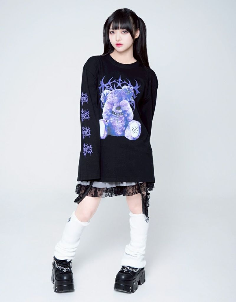 スパイクやチョーカーをあしらったダークテイストのベアが、TRAVASらしい病みかわいい世界観を演出します。