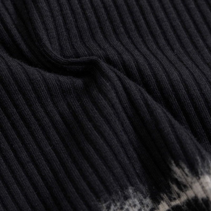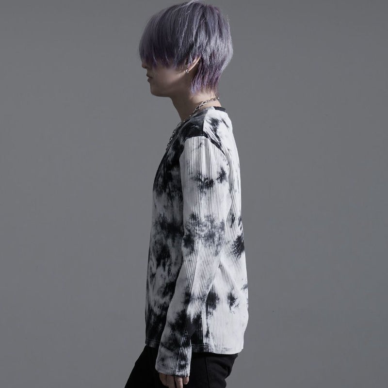 凹凸のある表面にムラ染めほどこしたクルーネックTシャツ。