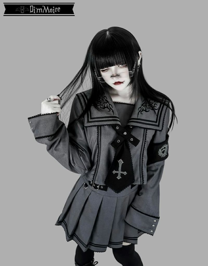 【こちらはGrayの購入ページです】 ・.━━━━━━━ † ━━━━━━━.・ DimMoire学園のNEW制服が登場 トップス+スカートのセットアップです. 刺繍を施したセーラー襟×ネクタイ×腕章が象徴となり、DimMoireらしい世界観と特別感を放つデザインに仕上げました スカートのウエストは後ろ半分がゴム仕様になっております◎ モデル身長:155cm 着用サイズ:Mサイズ ・.━━━━━━━ † ━━━━━━━.・ ※この商品は1点までのご注文とさせていただきます。