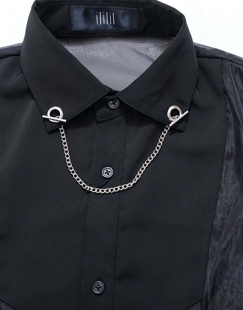 オーガンジー生地と若干の光沢があるシャツ生地を切り替えたデザインが特徴です。