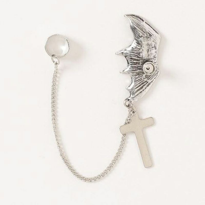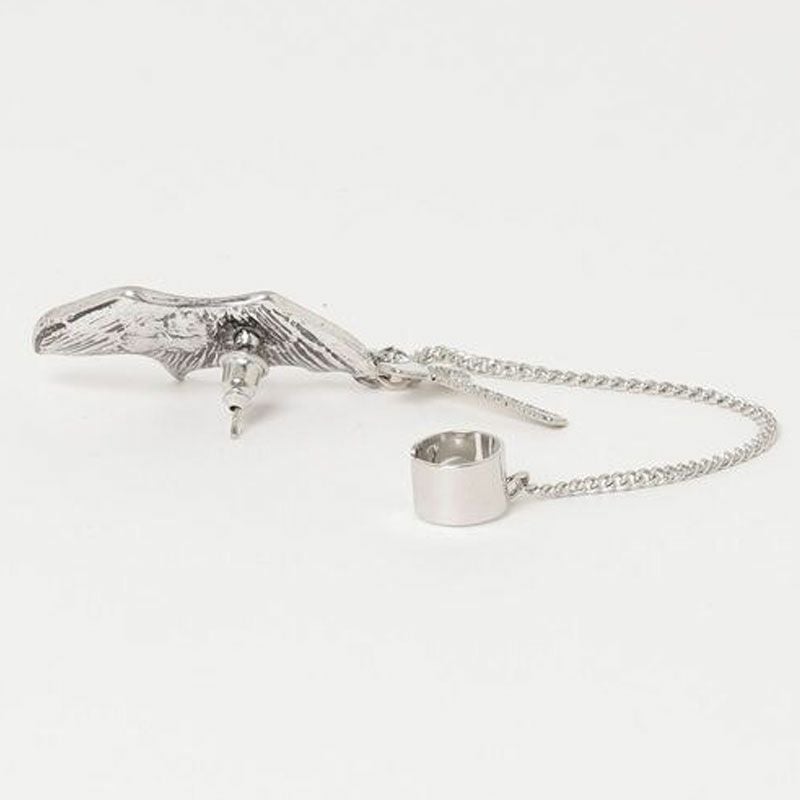 チェーン付きイヤーカフとデザインピアスが連結された個性派アクセサリー。