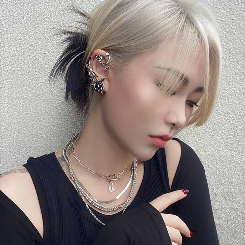 NOVESSEL【ノベセル】からローズピアス(左耳用)が登場しました。 耳を薔薇で包み込むような斬新なデザインが個性際立つピアス。 ゴシック服、ゴスロリやパンク・V系・原宿系に相性抜群のワンポイントアクセとなっています。ユニセックスとしても着用可能ですので、是非お試しください! ※モデル画像は照明などの影響により実際の商品と異なる場合がございます。
