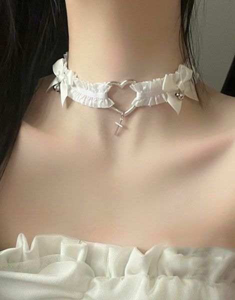 NOVESSELからハートクロスチョーカーが登場しました。 ハートにクロスデザインと病みカワMIXたっぷりのチョーカーが登場です。 パンク、ロック系のスタイリングは勿論、地雷系やストリートスタイルのアクセントにもおすすめ◎。 ※モデル画像は照明などの影響により実際の商品と異なる場合がございます。