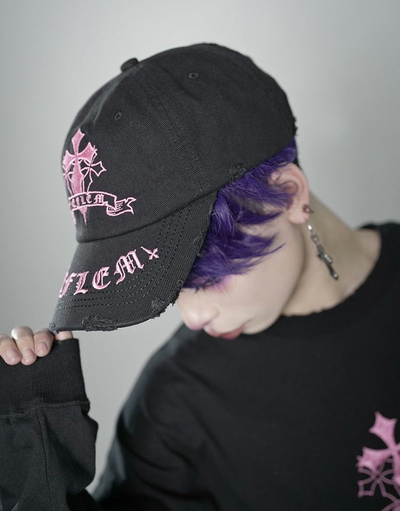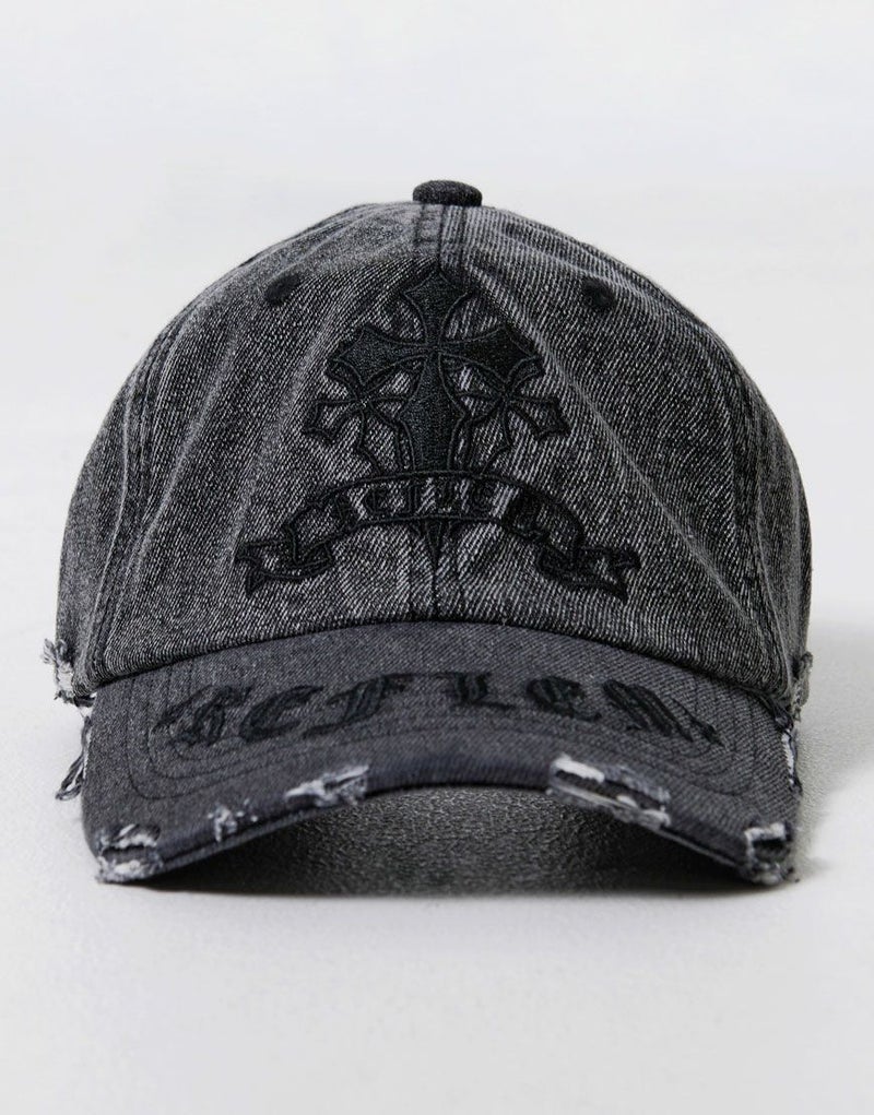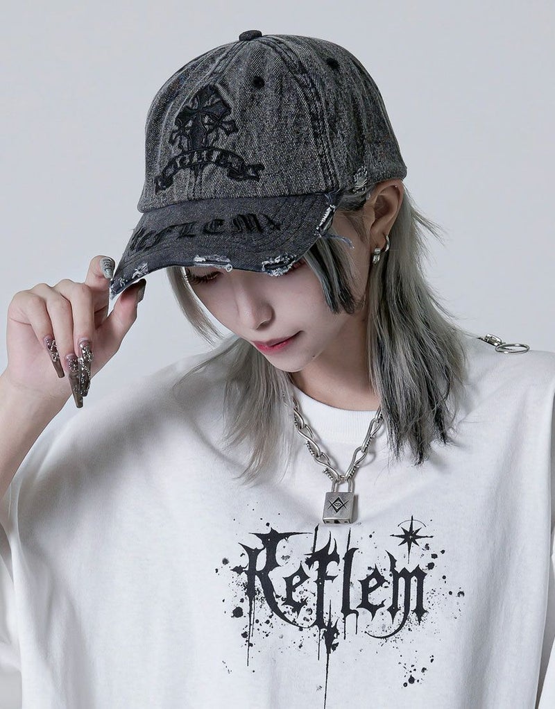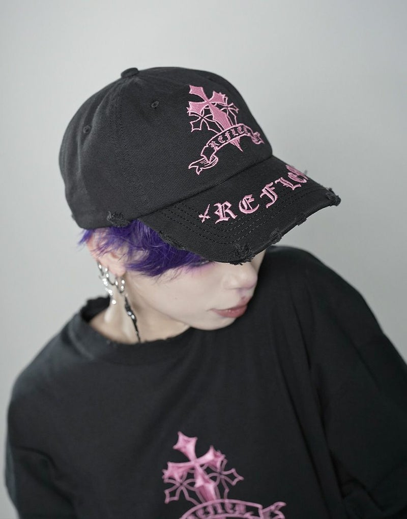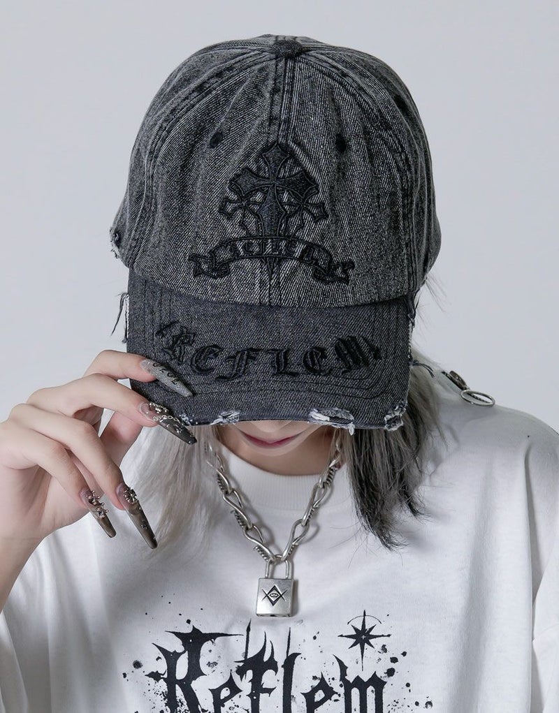 REFLEM【レフレム】クロス刺繍ダメージデニムキャップ/全3色