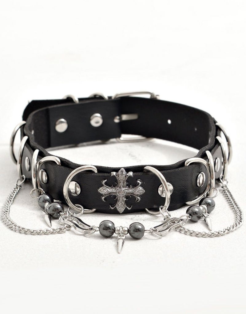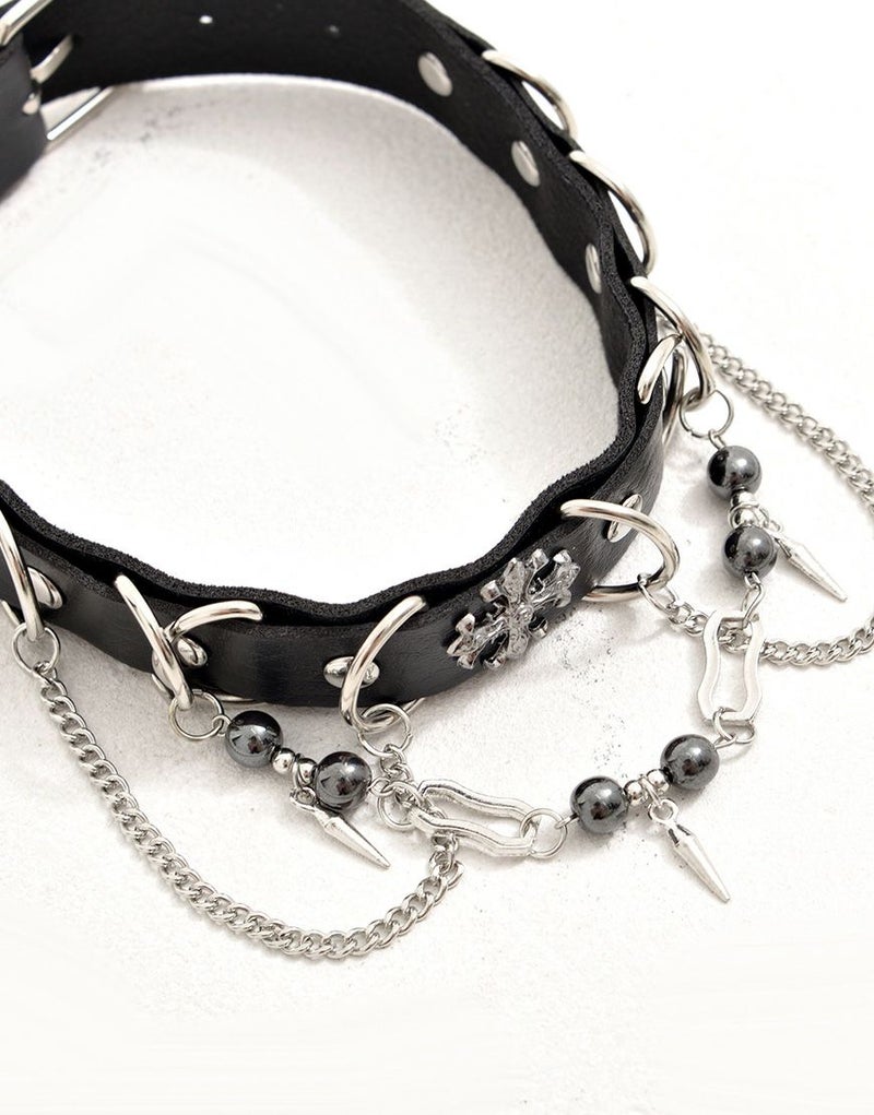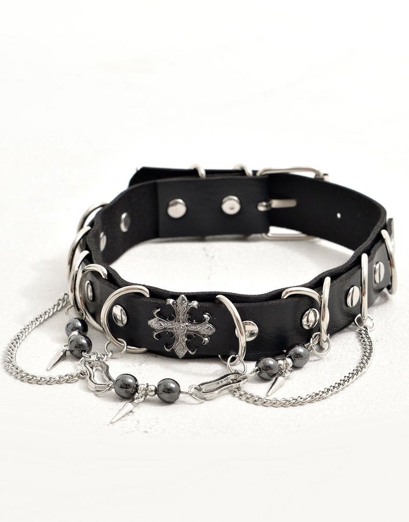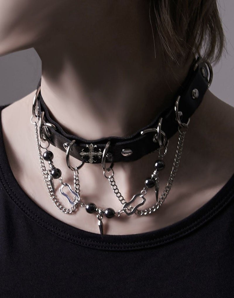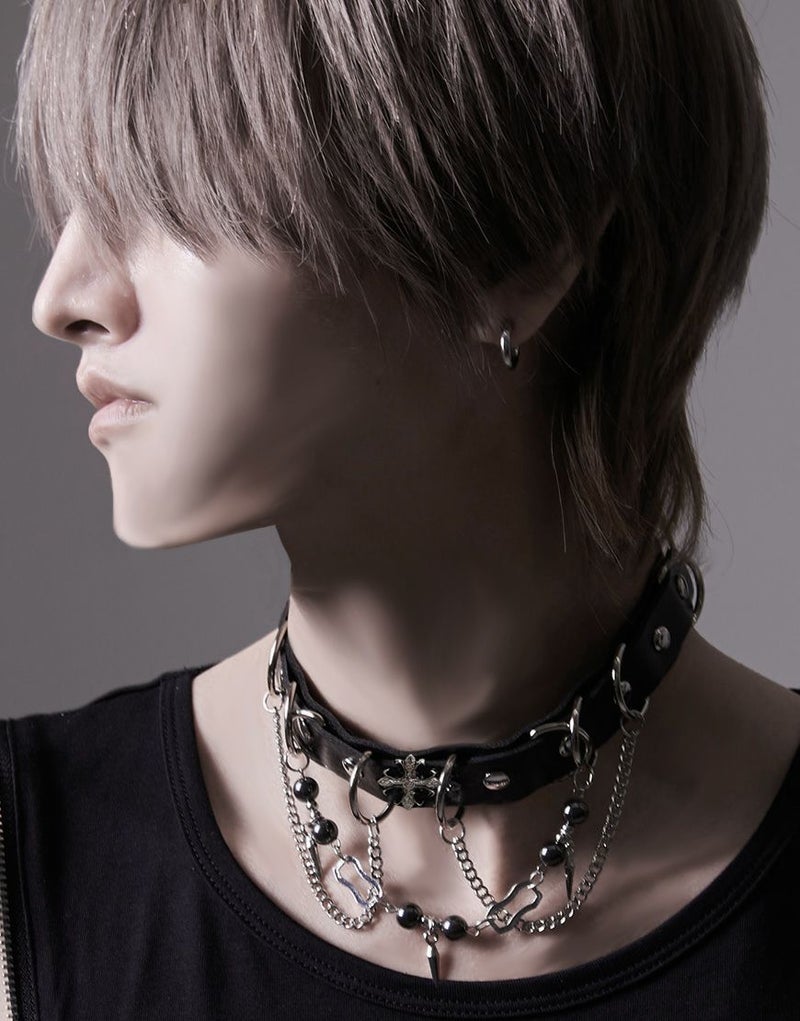 NOVESSELからDカンクロスチェーンチョーカーが登場。 3つのチェーンを施したチョーカー。 ボールチェーンやクロスエンブレム、Dカン付きで、見ためのインパクトにこだわったアイテムです。 地雷系・モード系・ストリート系と幅広く刺さるデザインです。 ※モデル画像は照明などの影響により実際の商品と異なる場合がございます。
