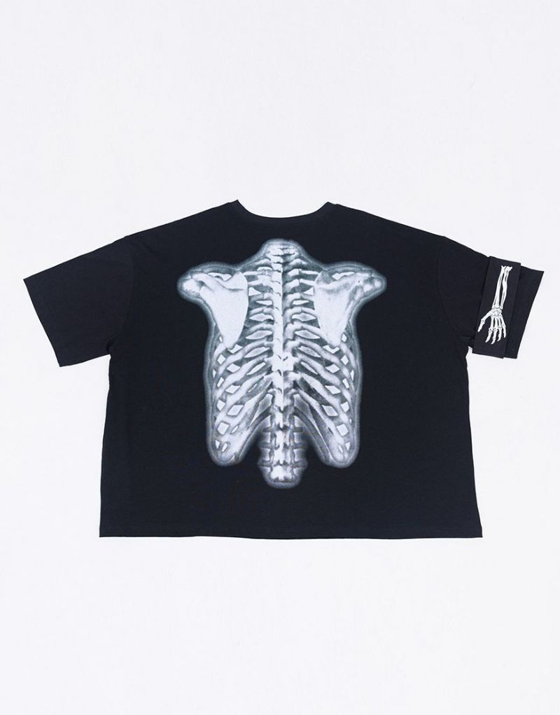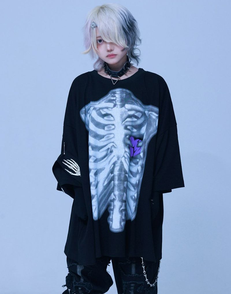 まるでX線写真のようにフロントとバックに上半身の骨格を大胆プリント。