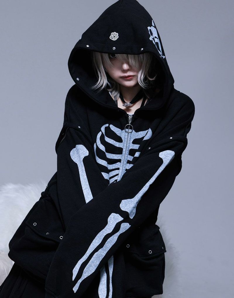 フロント・袖・フード・バックにはスケルトンをイメージした骨モチーフアートワークをプリントし、インパクトのあるビジュアルを演出。