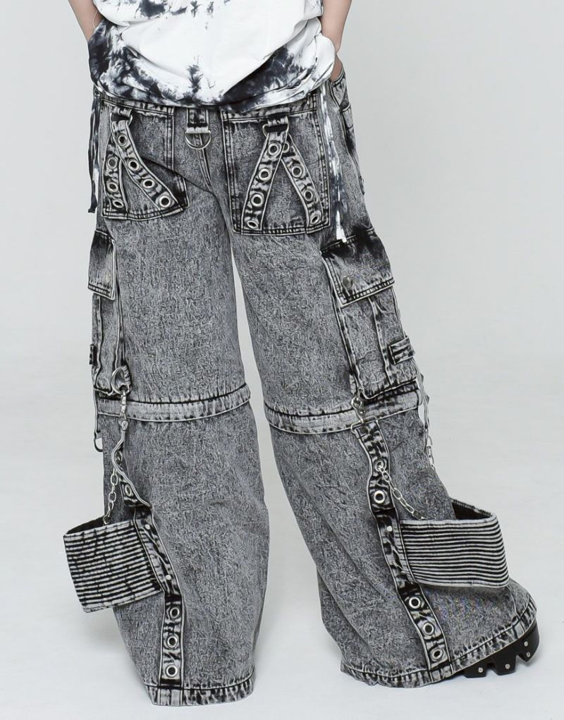 膝部分にファスナーがありハーフパンツ風にもアレンジ可能なワイドシルエット2WAYカーゴパンツ。