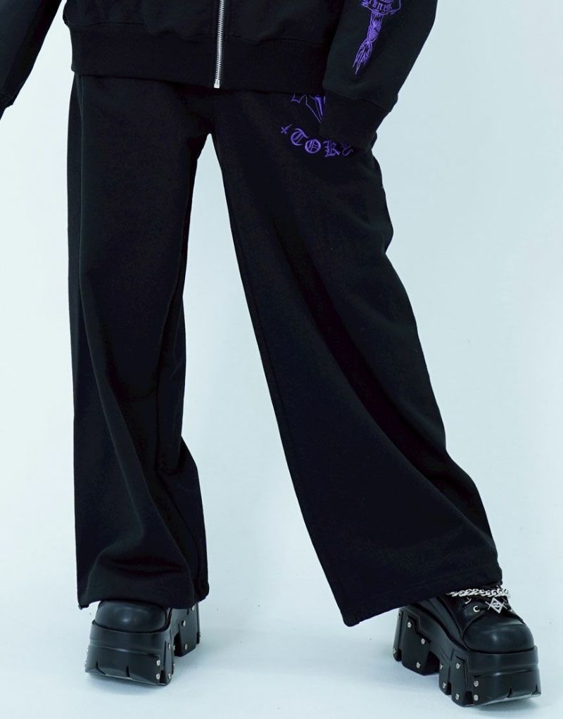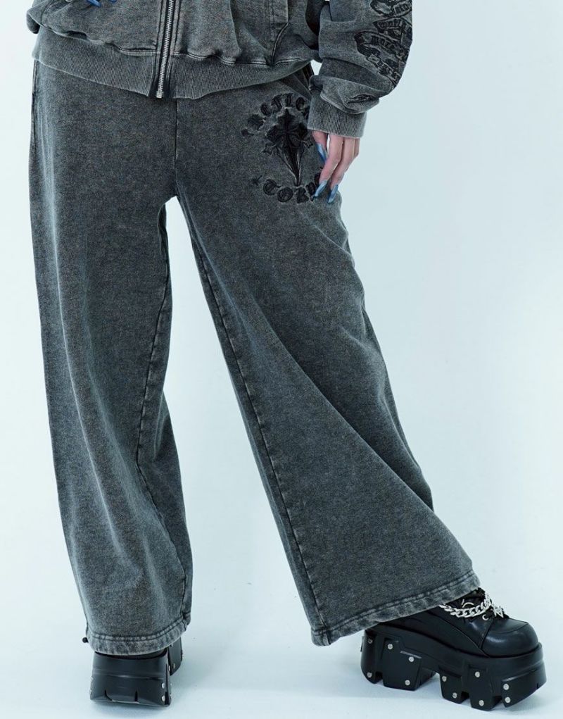 ゴシックテイストのアートワークを刺繍で表現したワイドシルエットのスウェットパンツです。