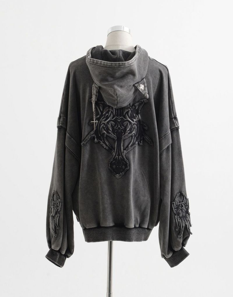 鋲・装飾・刺繍といったREFLEMらしいアイコニックな要素を詰め込んだ、圧倒的存在感のパーカー。