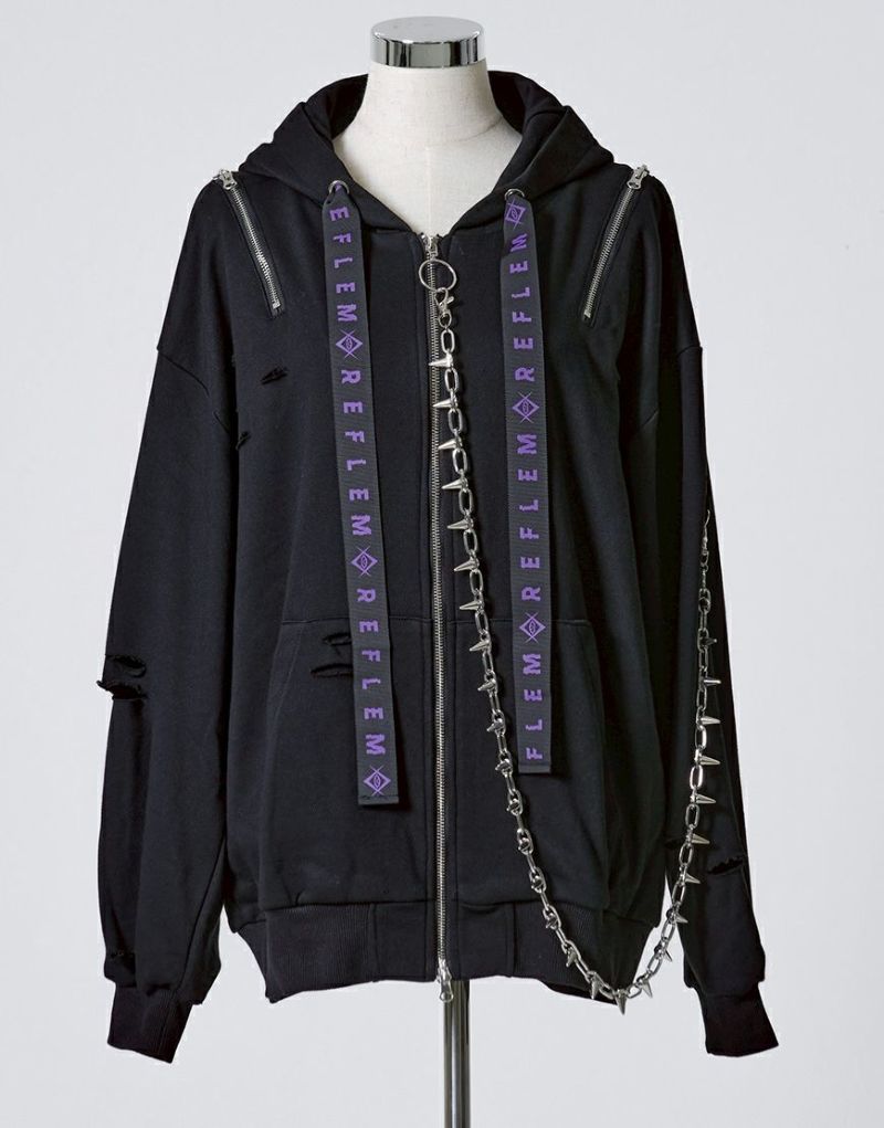 REFLEMからチェーン付きブロークンうさ耳長袖ジップアップパーカーが登場。