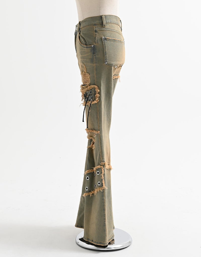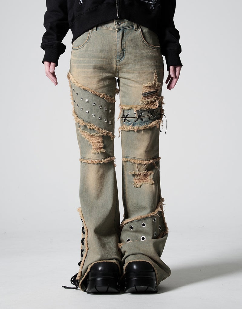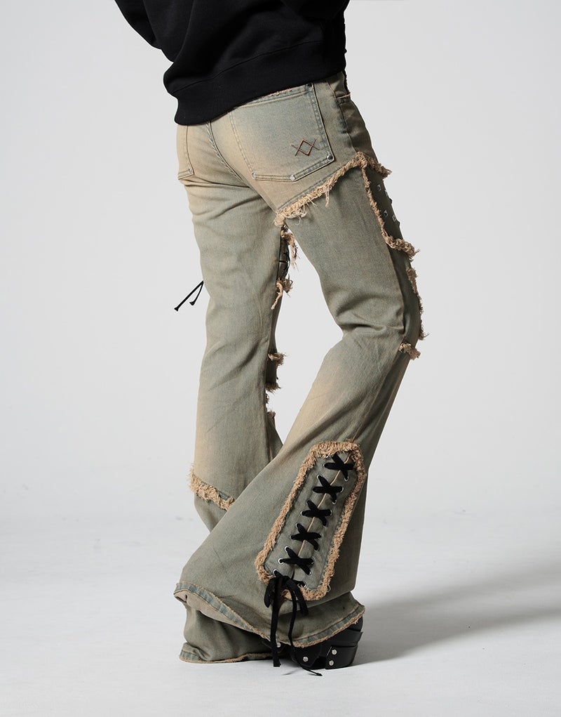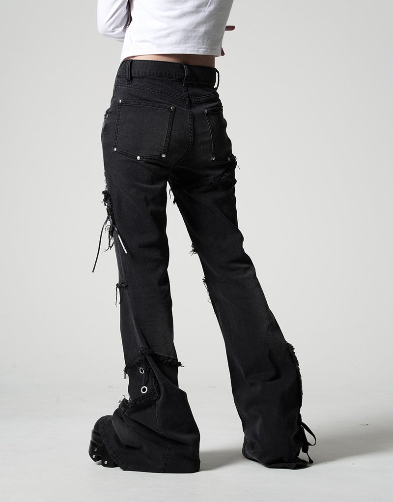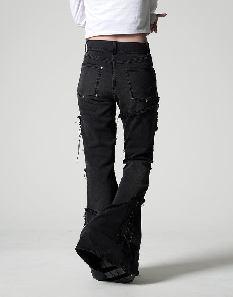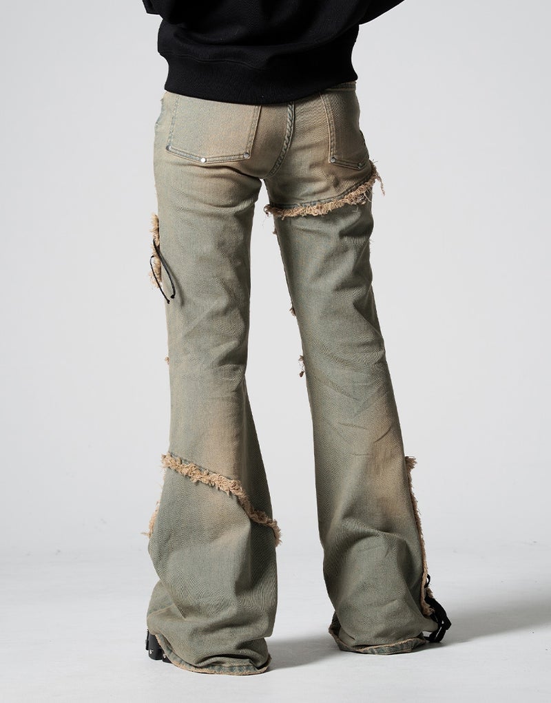 切りっぱなしのカットオフディテールが強烈な存在感を放つ、REFLEMらしいグランジテイストのフレアデニム。