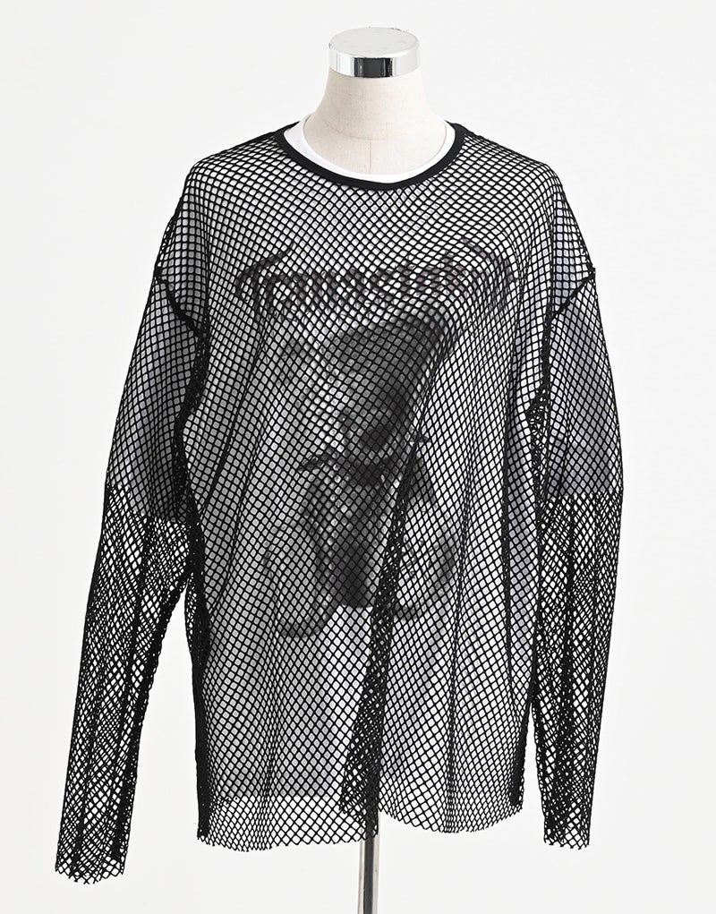 メッシュロンTは透け感のある素材で、インナーのグラフィックを引き立てつつ、軽やかで抜け感のあるレイヤードスタイルを演出。単体でも使えるため、手持ちのアイテムと組み合わせてコーデの幅を広げることも可能です。