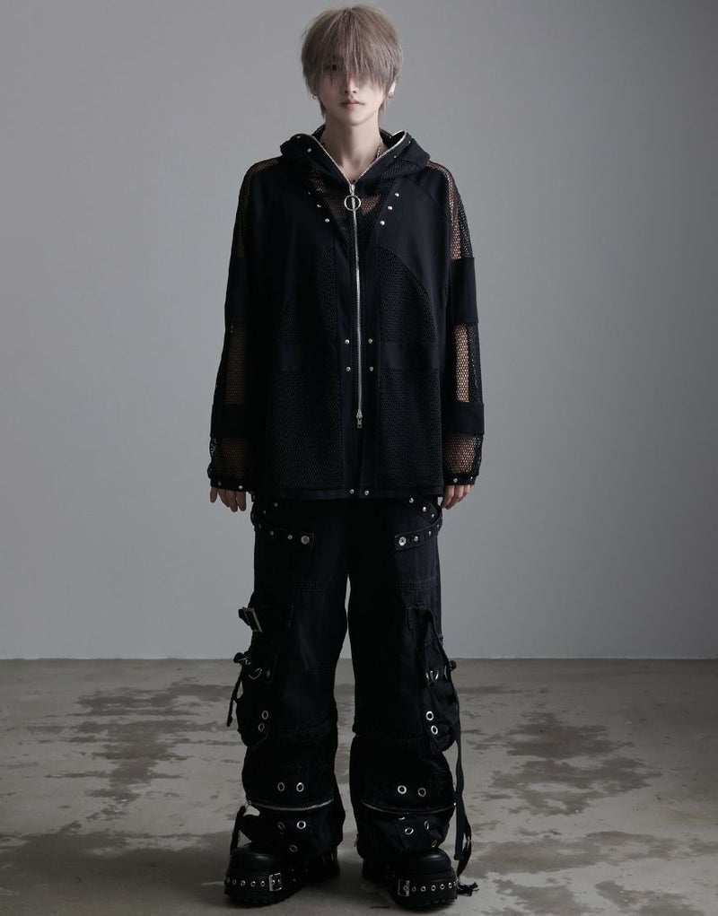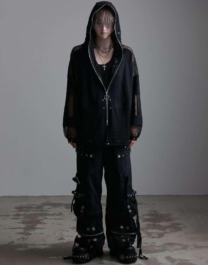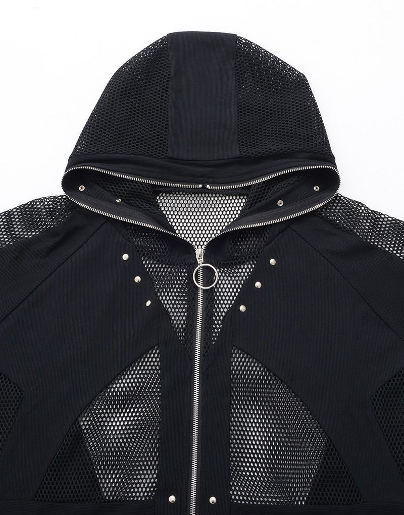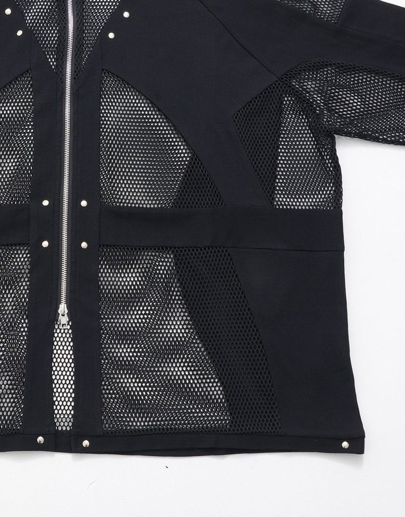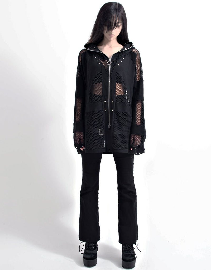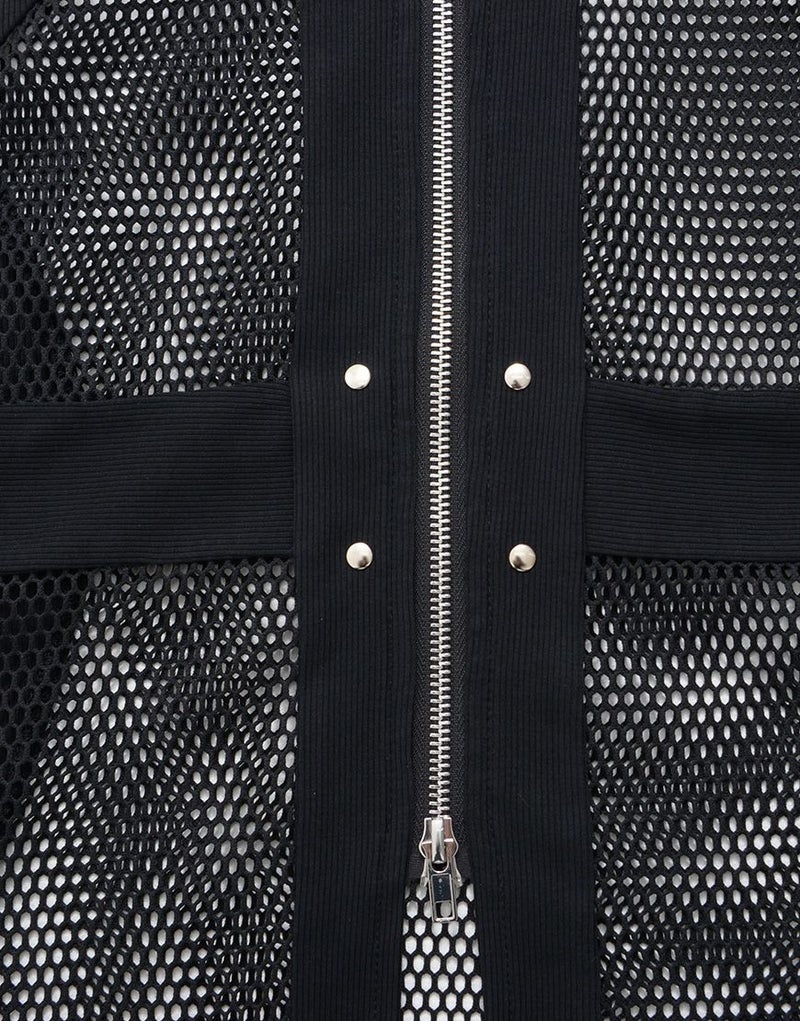 ililil【イルイルイル】Chainmailリブ切り替えメッシュパーカー/全1色