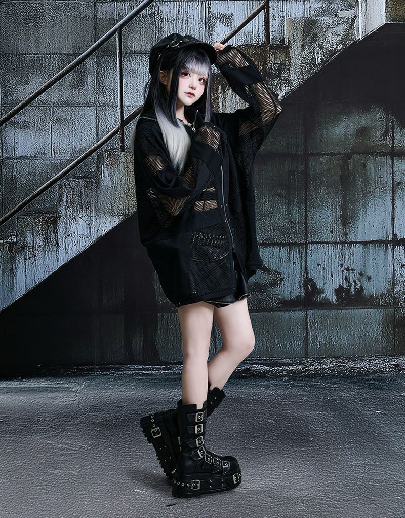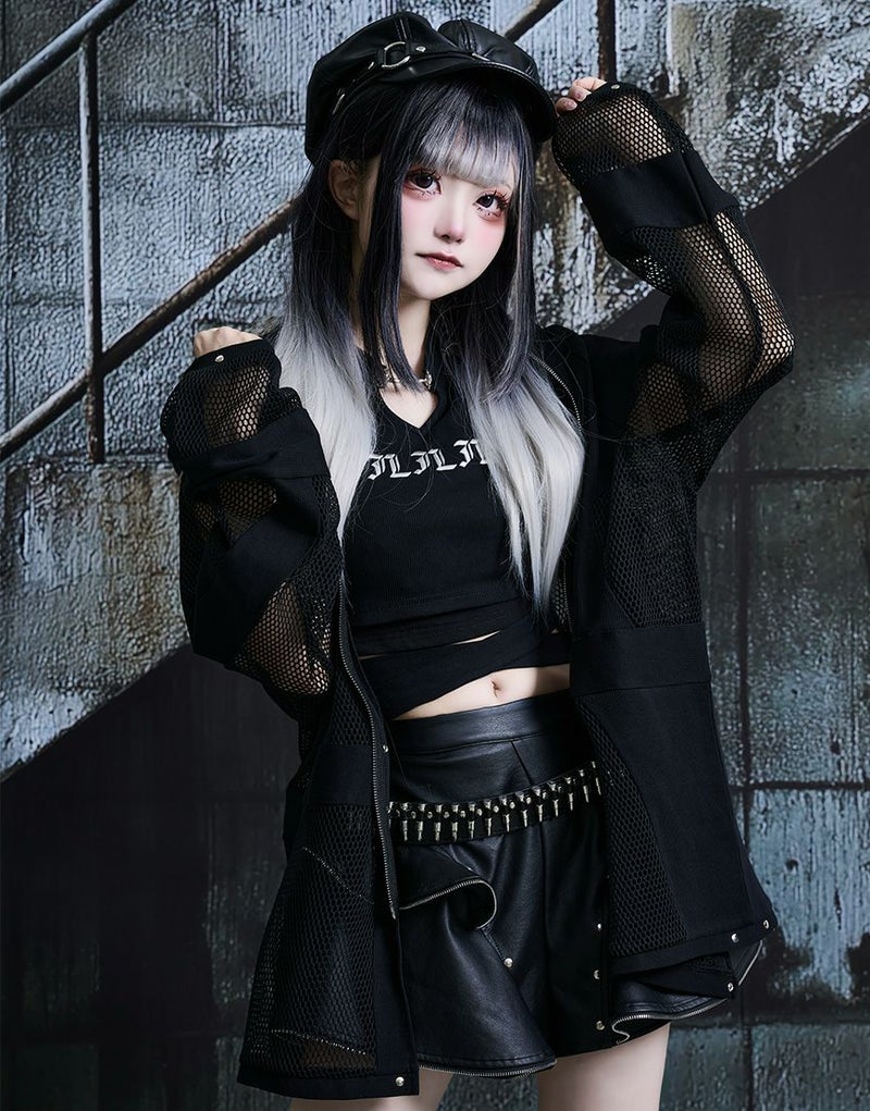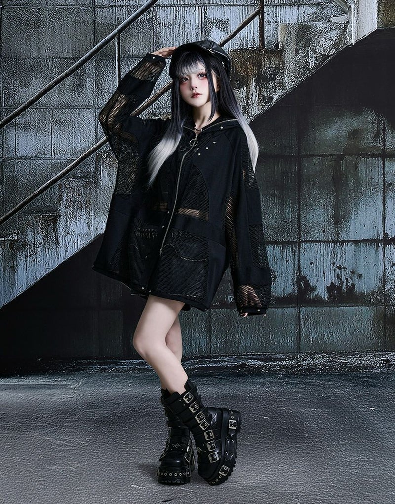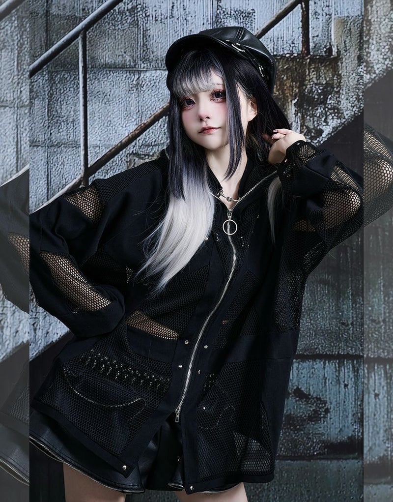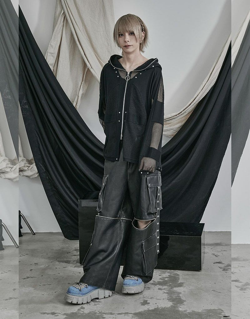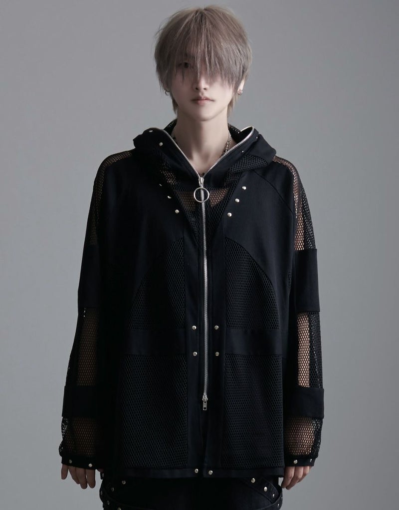 ililil【イルイルイル】Chainmailリブ切り替えメッシュパーカー/全1色