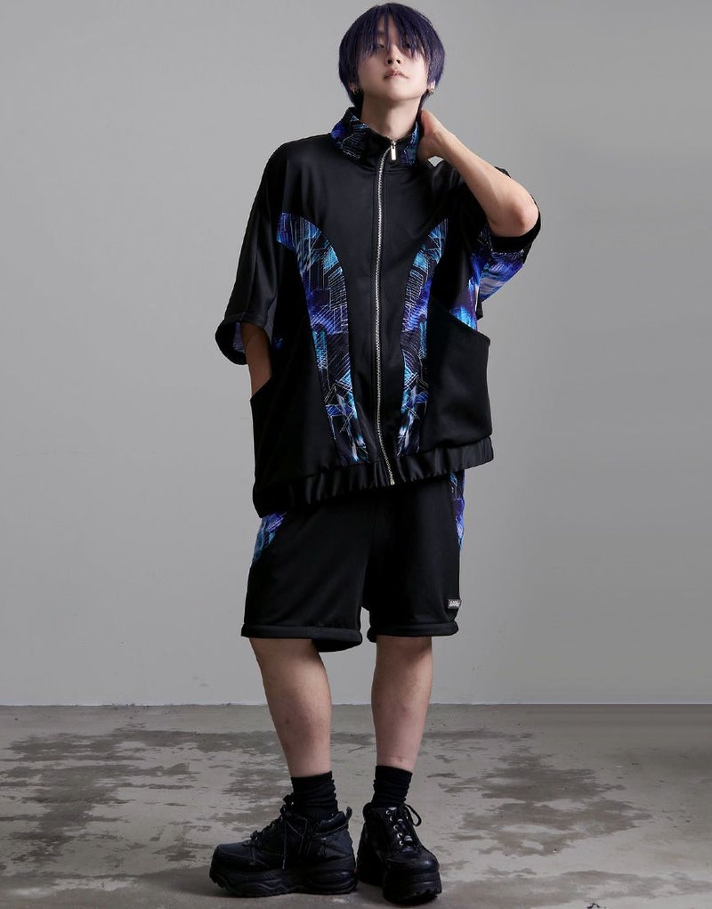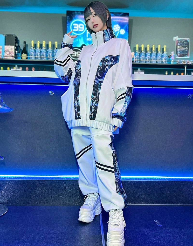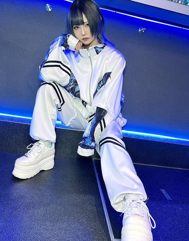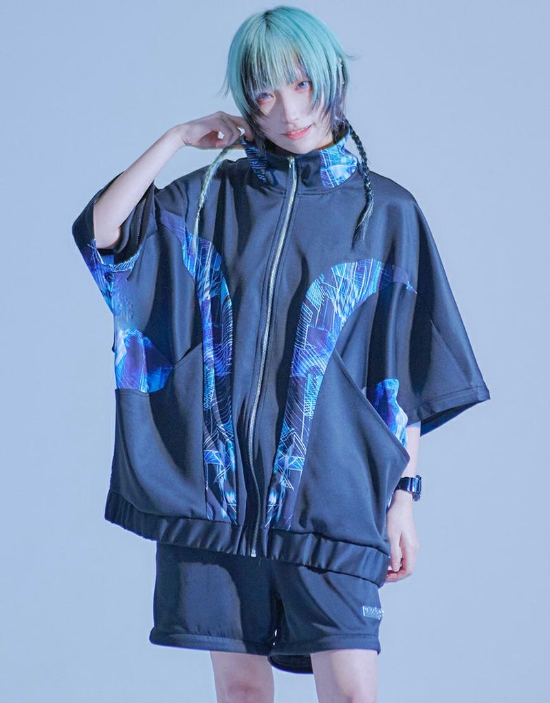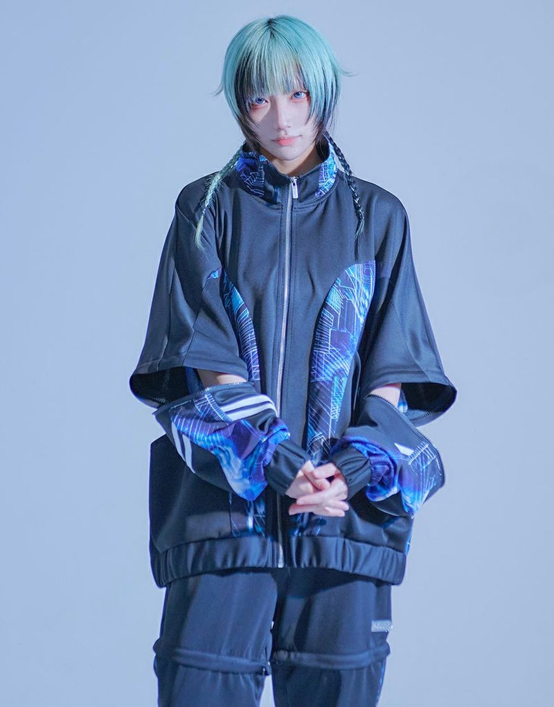 サイバー感漂う、2WAYギミックジャージトップス。