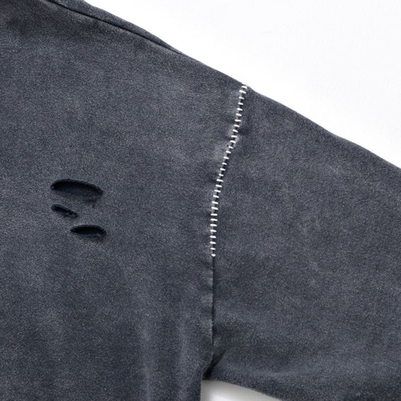 ililil【イルイルイル】よりlost your heartクラッシュ加工パーカーが登場です。 フロントにダガーハートグラフィックがされたプルオーバーパーカー。 所々にダメージ加工を施しヴィンテージ感を演出。ポイントでポケットや袖、フードの配色ステッチデザインと更にドローコードのリングチェーンがアクセントに。 ビッグシルエットでメンズ、レディースを問わず、ユニセックスでご着用頂ける一押しパーカーです。