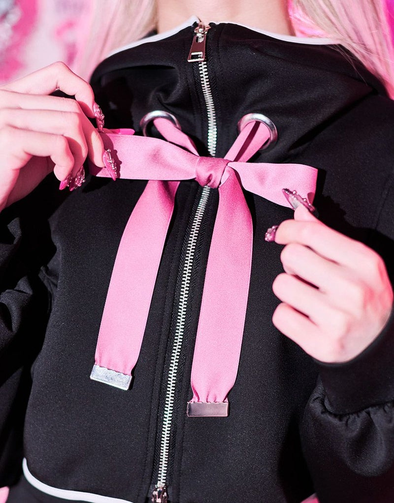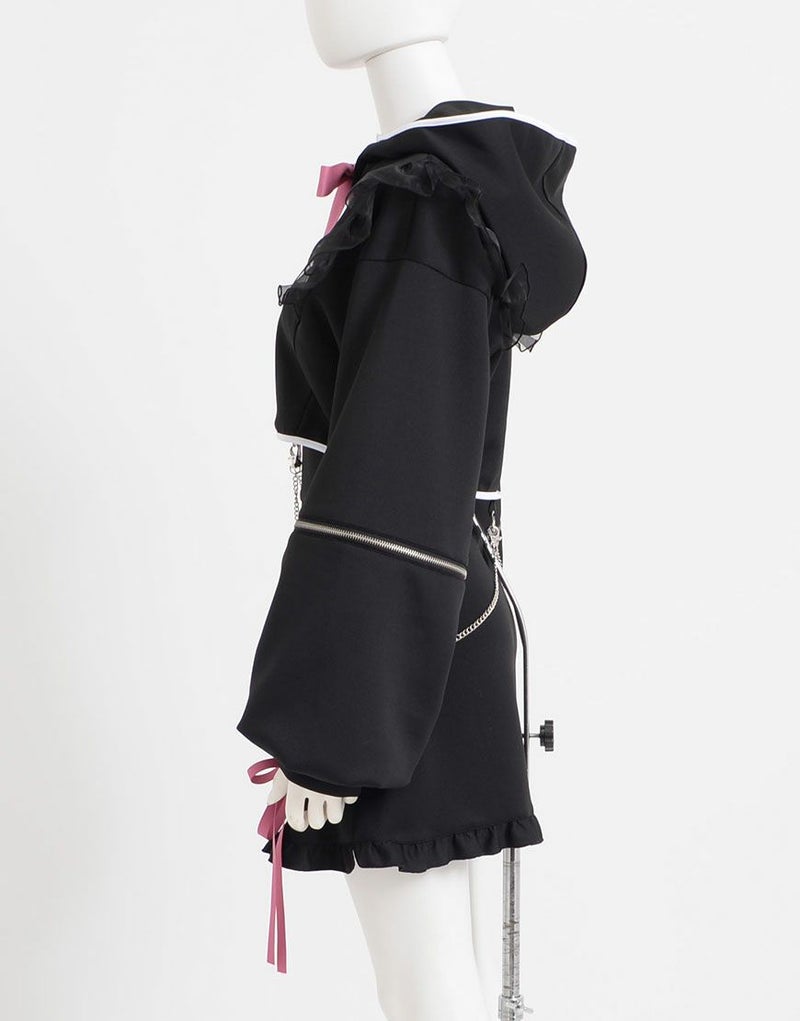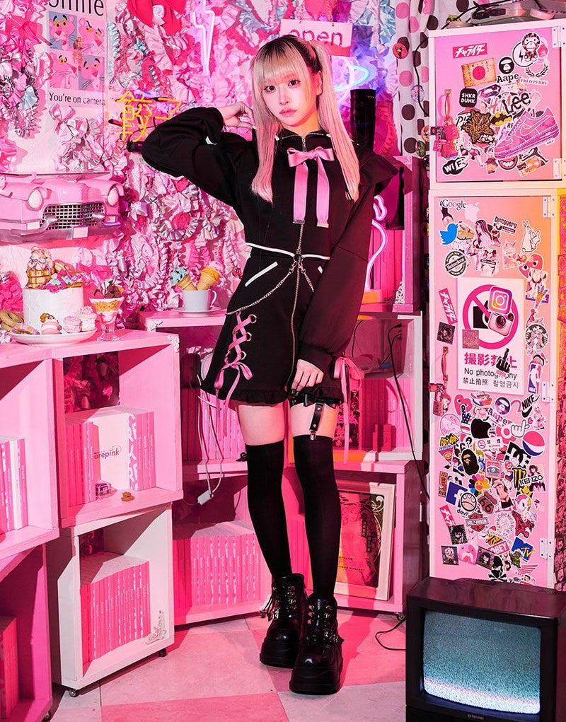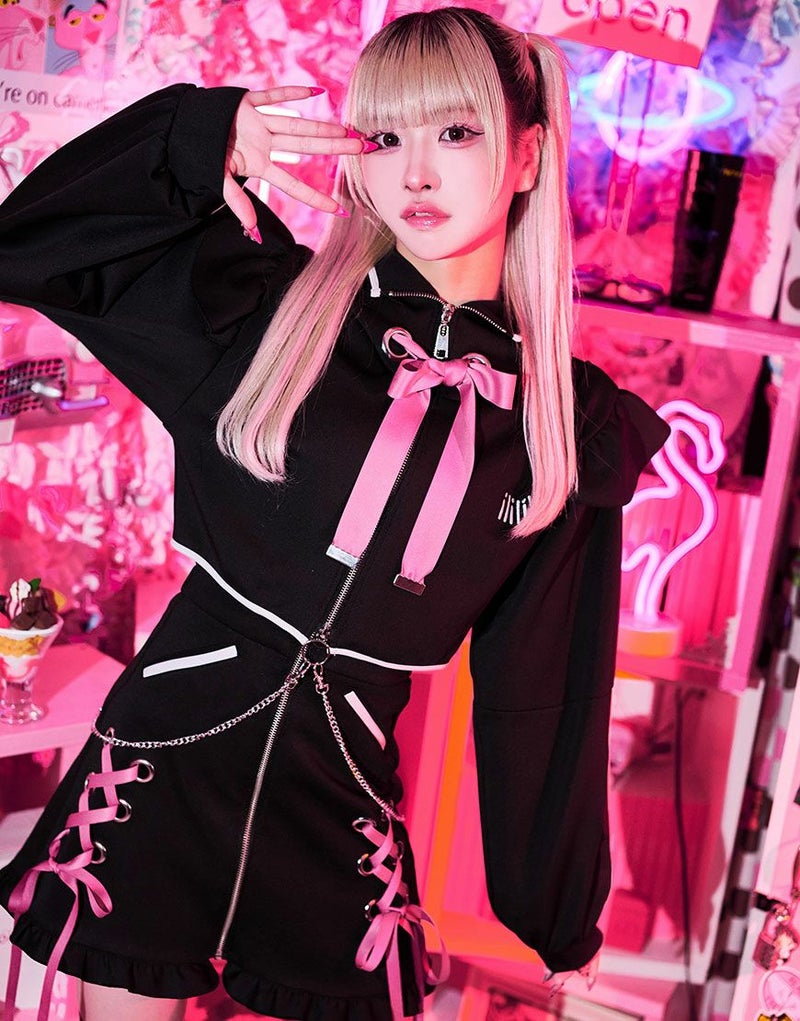 スカートにはフロント左右にレースアップデザインを施し地雷感を演出しました☆