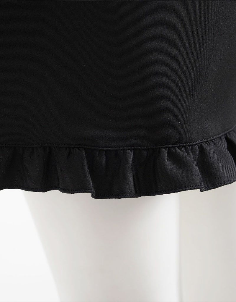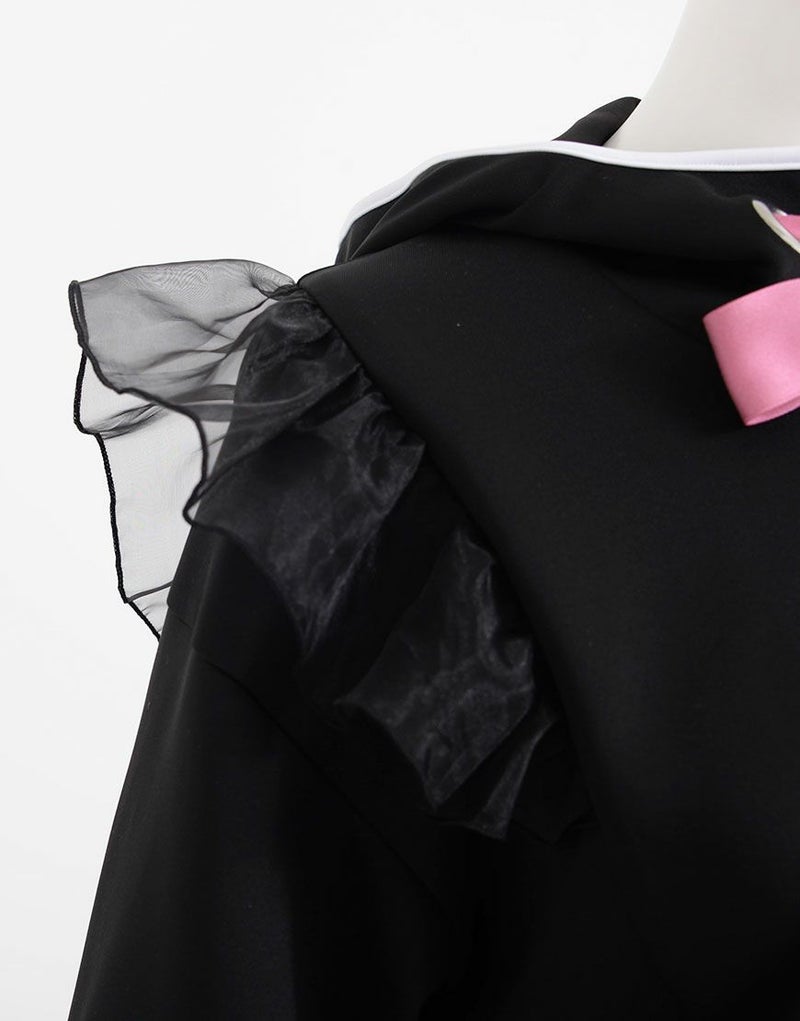 両肩にはチュール生地のフリル配置したキュートなデザイン♪
