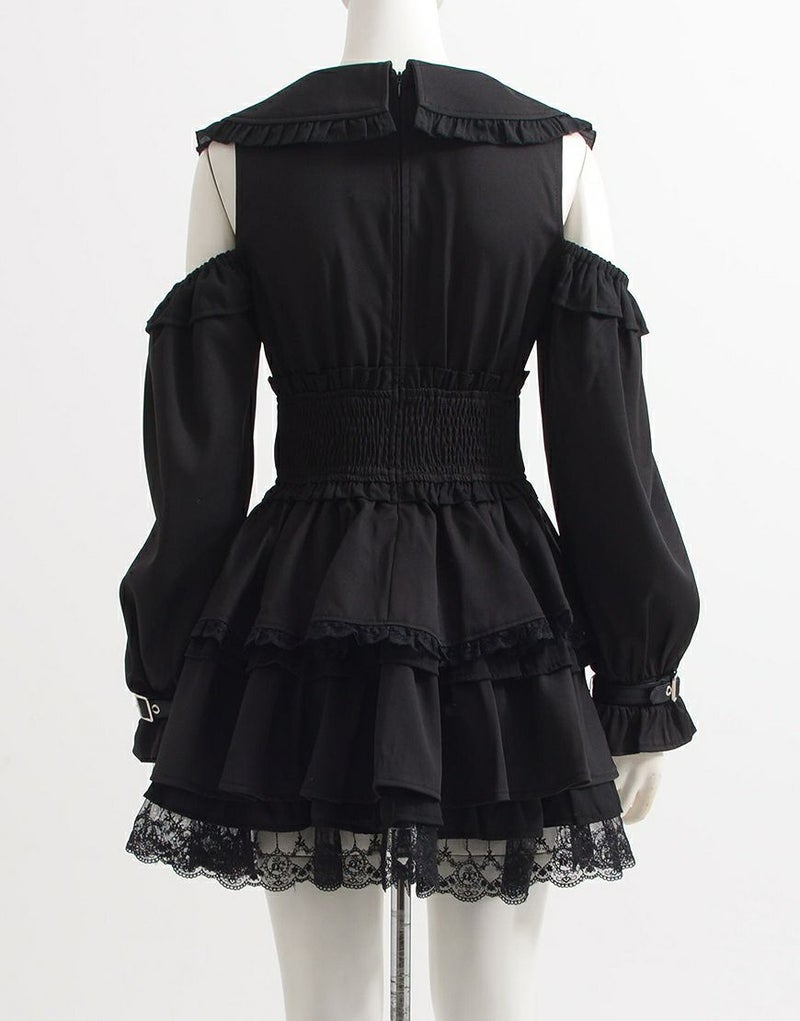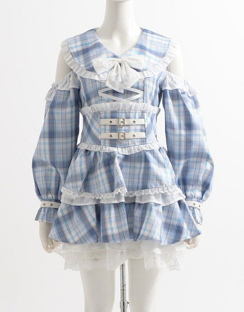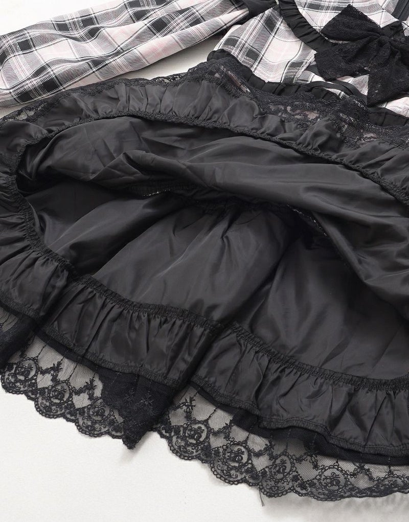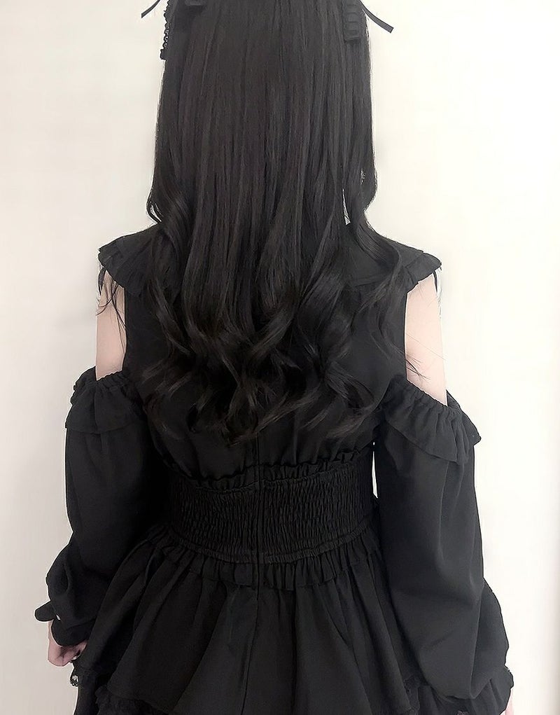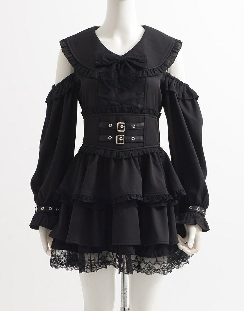 広めに開いた大きめ丸襟に、取り外し可能なレースリボンを添えた、地雷系最強ワンピース。