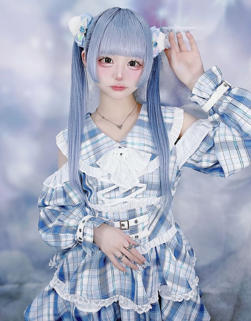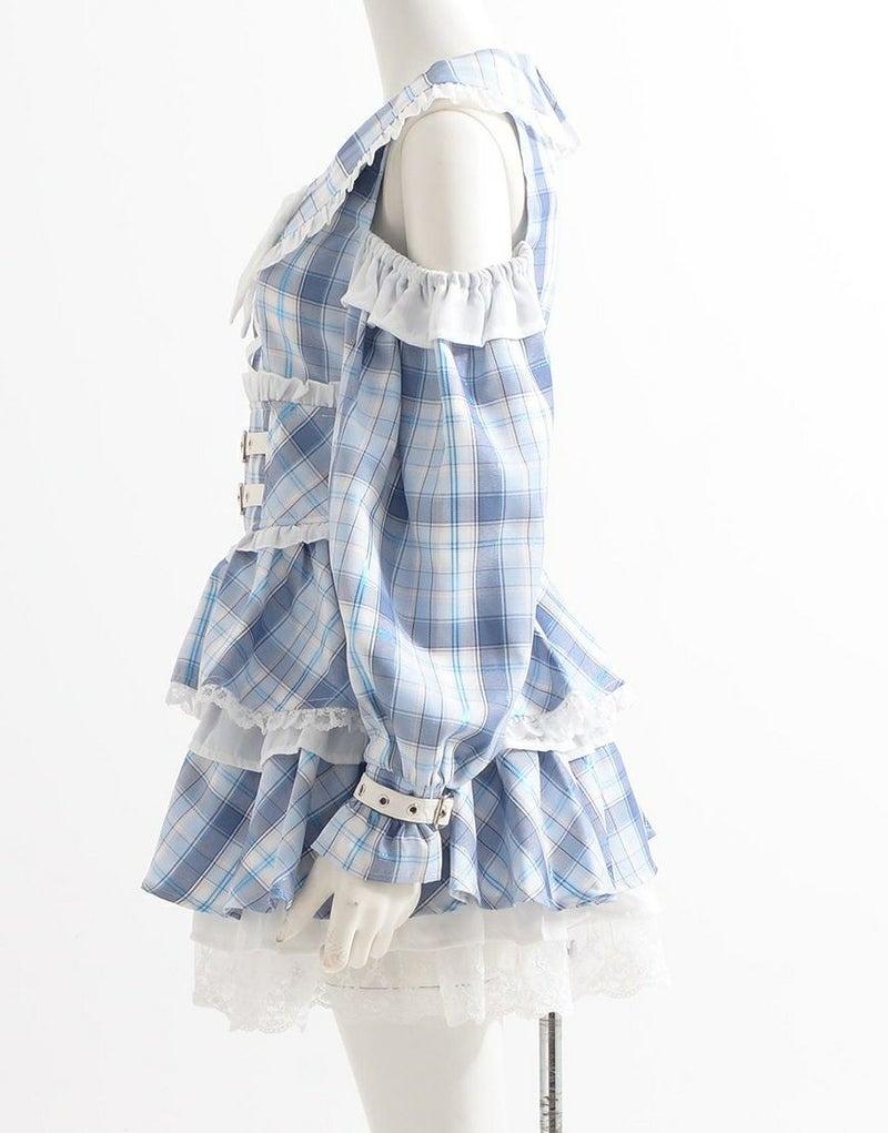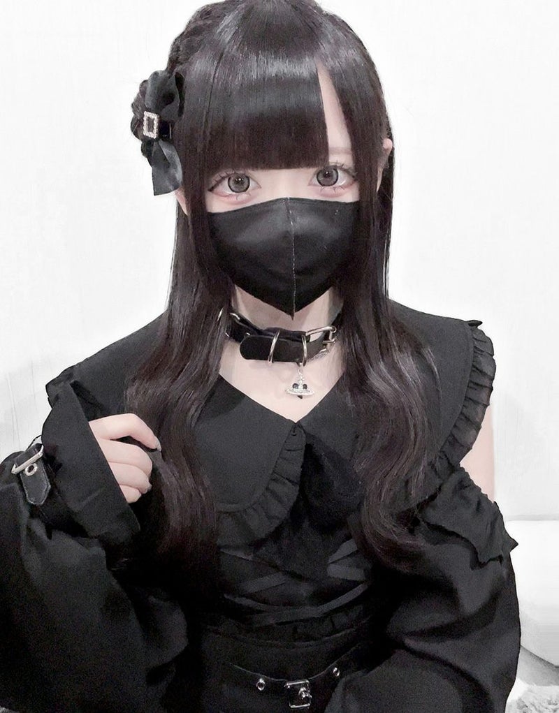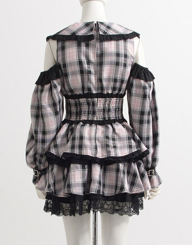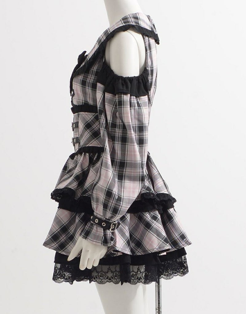 広めに開いた大きめ丸襟に、取り外し可能なレースリボンを添えた、地雷系最強ワンピース。