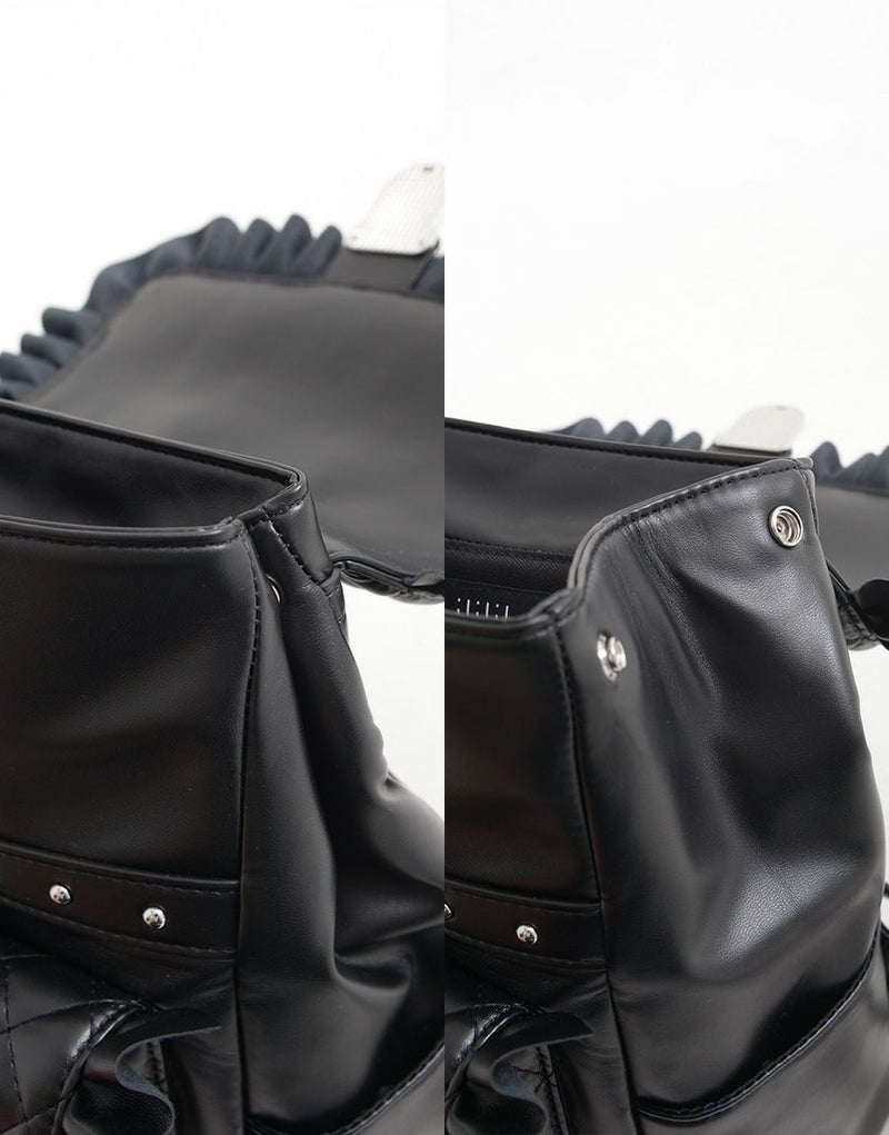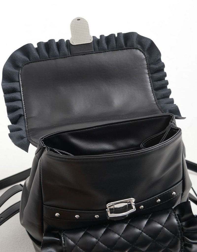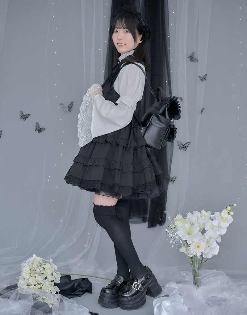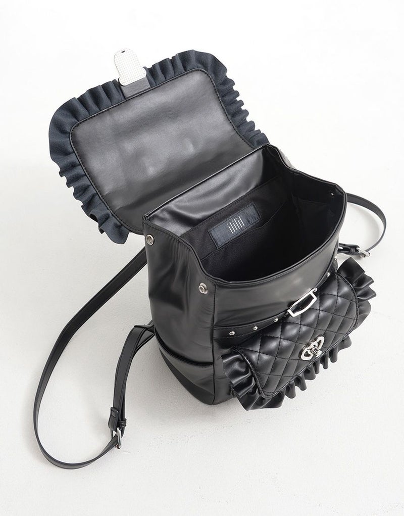 ilililより、地雷ちゃんのまっくろふりるの罪リュックが登場です。 ふりふり、でも毒っぽく。 地雷ちゃんの「かわいい」と「罪」を背負って出かける、真っ黒なごほうび。 広がるフリルとキルティングが印象的なリュック。 フタ部分にはクロスチェーンを、前ポケットにはハートのツイストロックを配し、ディテールの一つひとつに“地雷かわいい”を詰めこみました。 デイリー使いはもちろん、ライブ遠征や推し活にもぴったり◎ 大人でも持ちやすい上品なブラックカラーで、甘すぎないバランス感も魅力です。