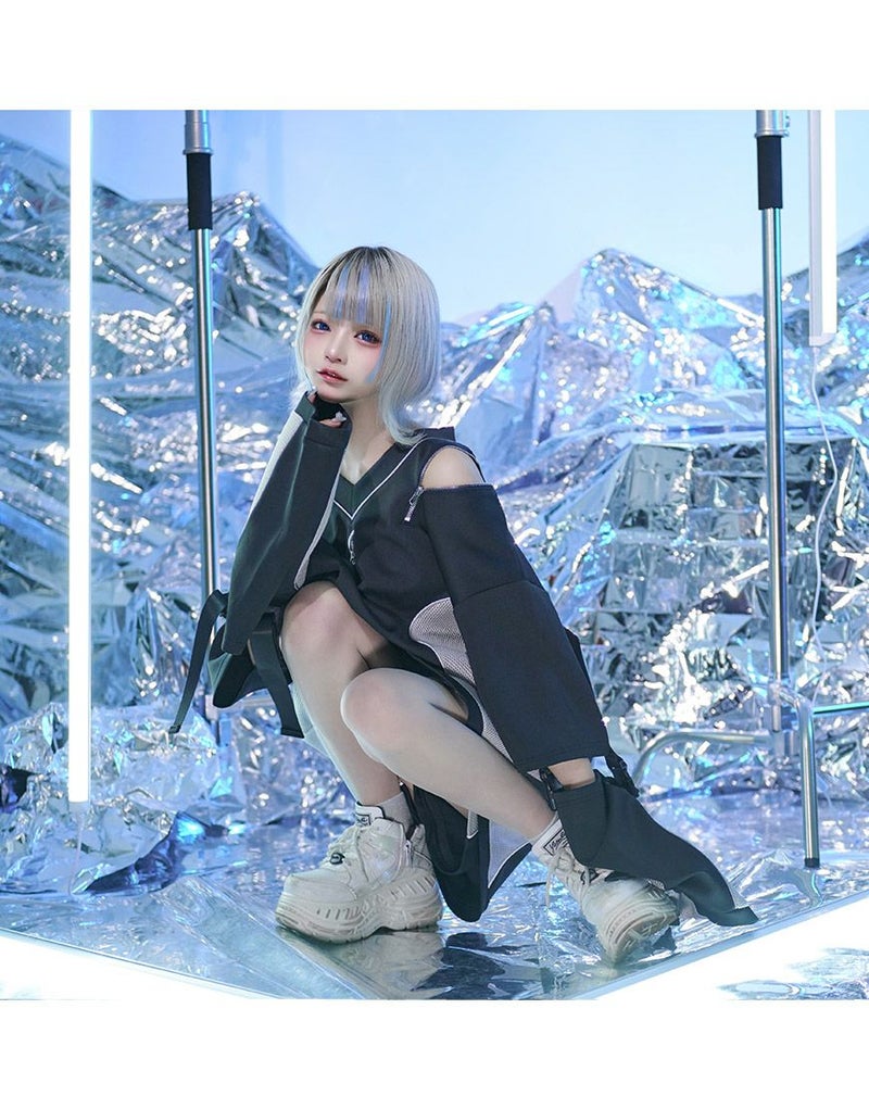 両肩にはZIPを配置し肩出しの可愛い着こなしもできます