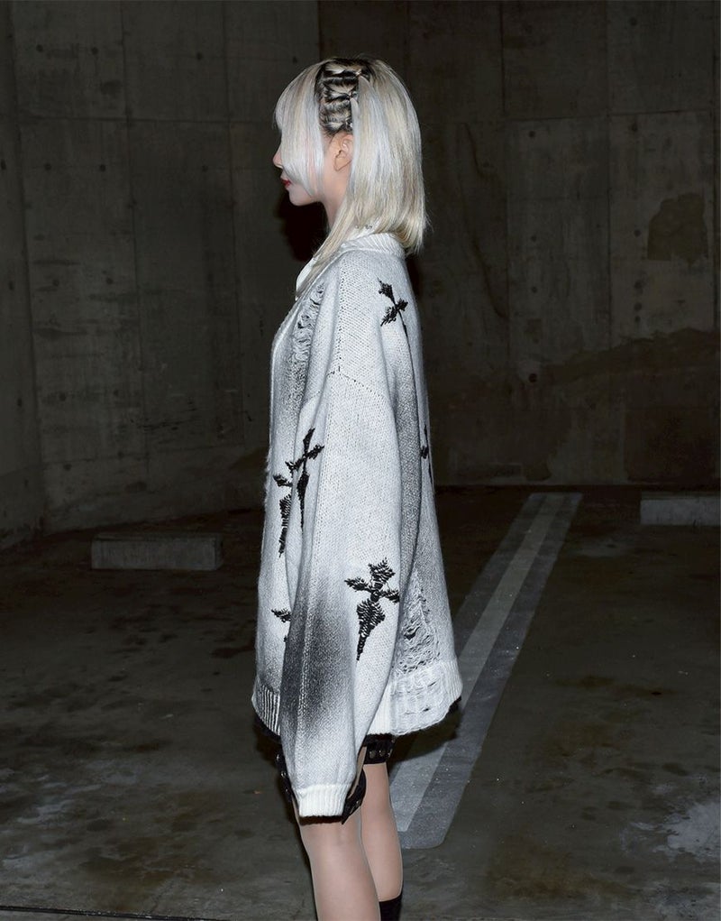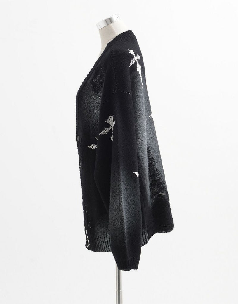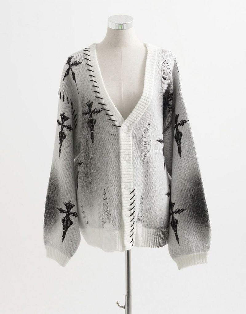 REFLEMから吹き付け風のラバープリントを施したクラッシュクロスカーディガンが登場。