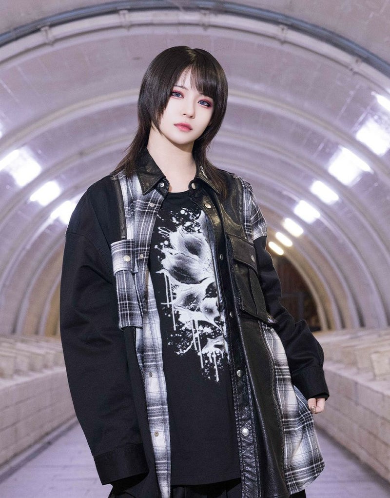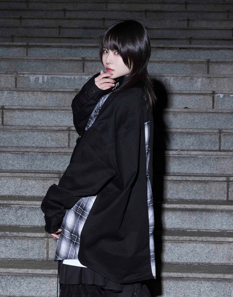 異素材を組み合わせたドッキングデザインが印象的な、AdaNousのドッキングシャツ。