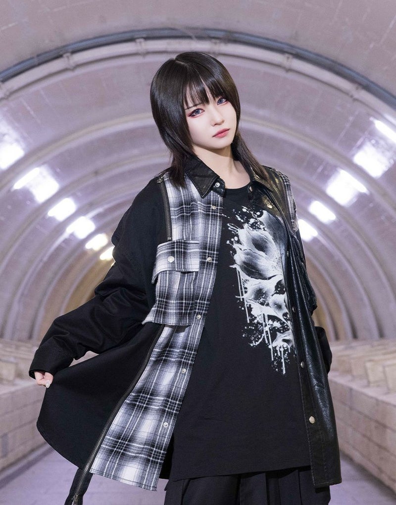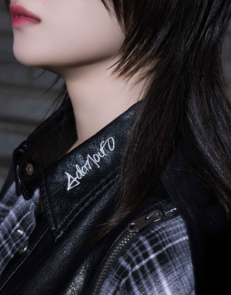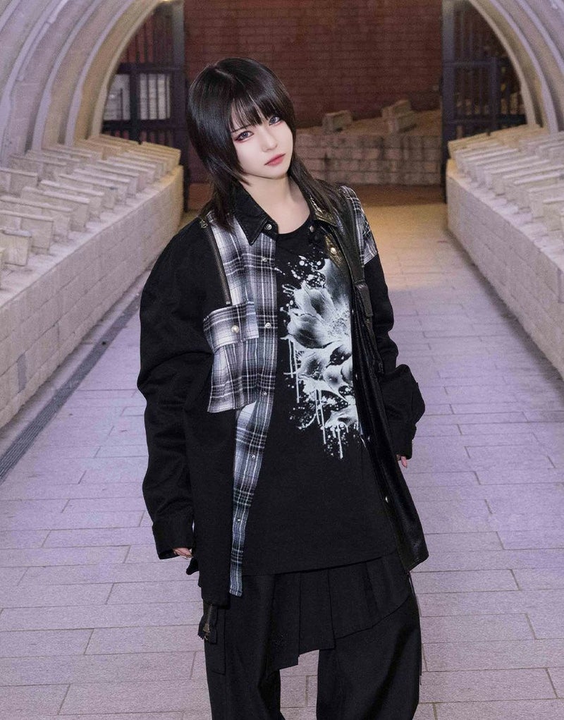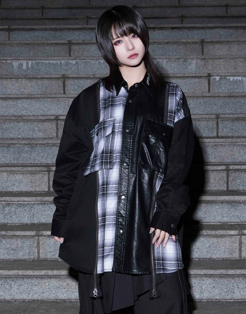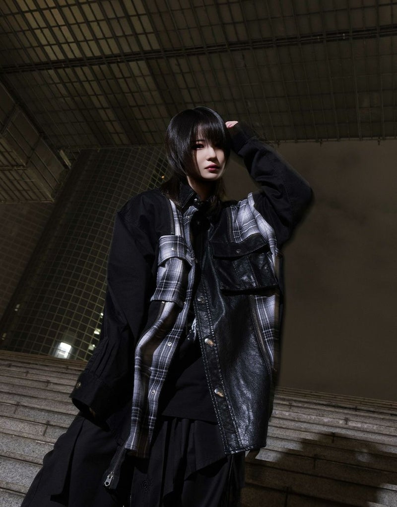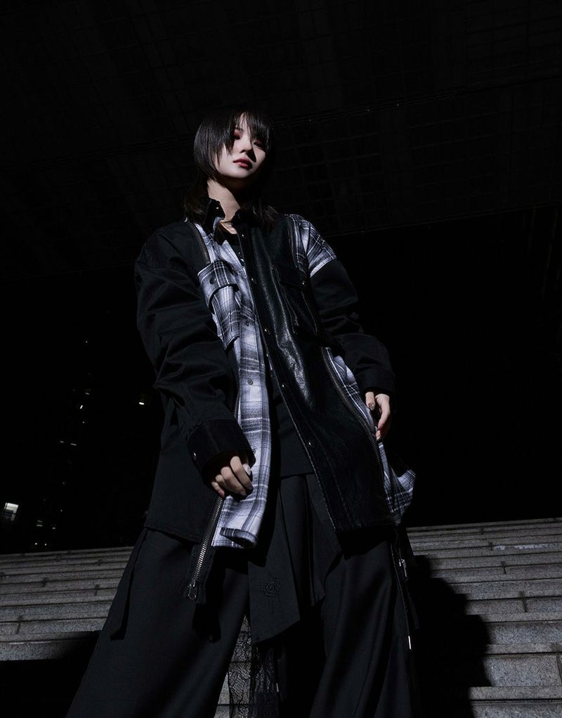 チェック生地をファスナー仕様で切り替えた存在感のある一着です。