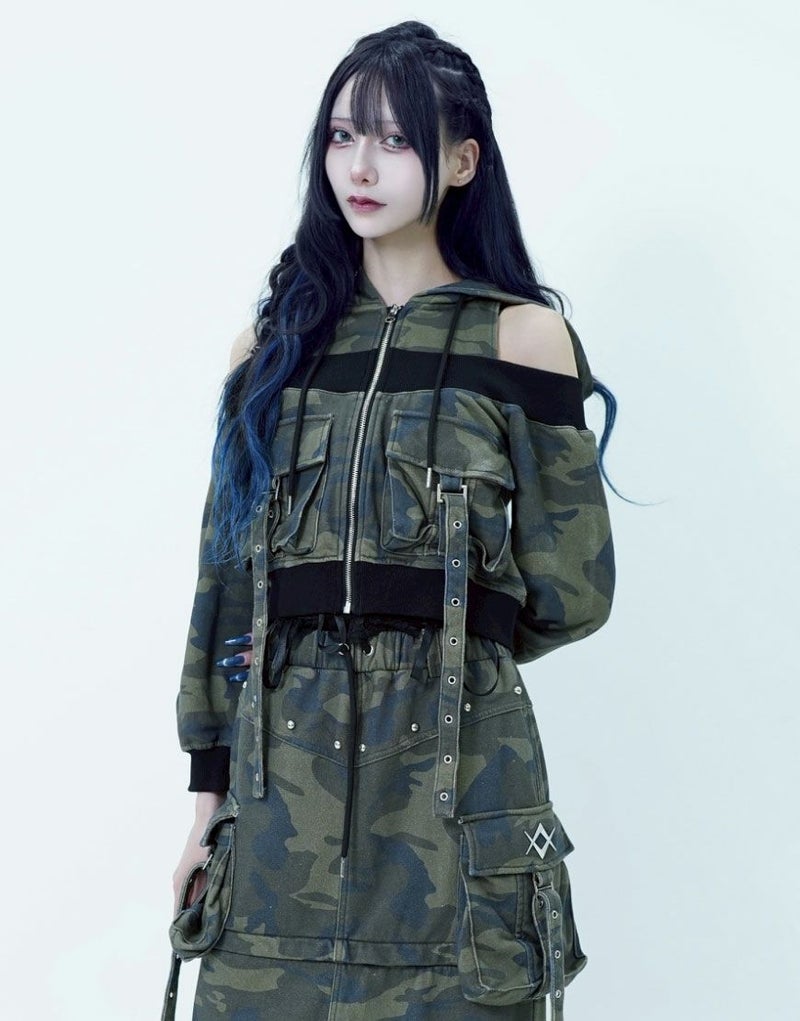 REFLEMからオフショルクロップドジップパーカーが登場。
