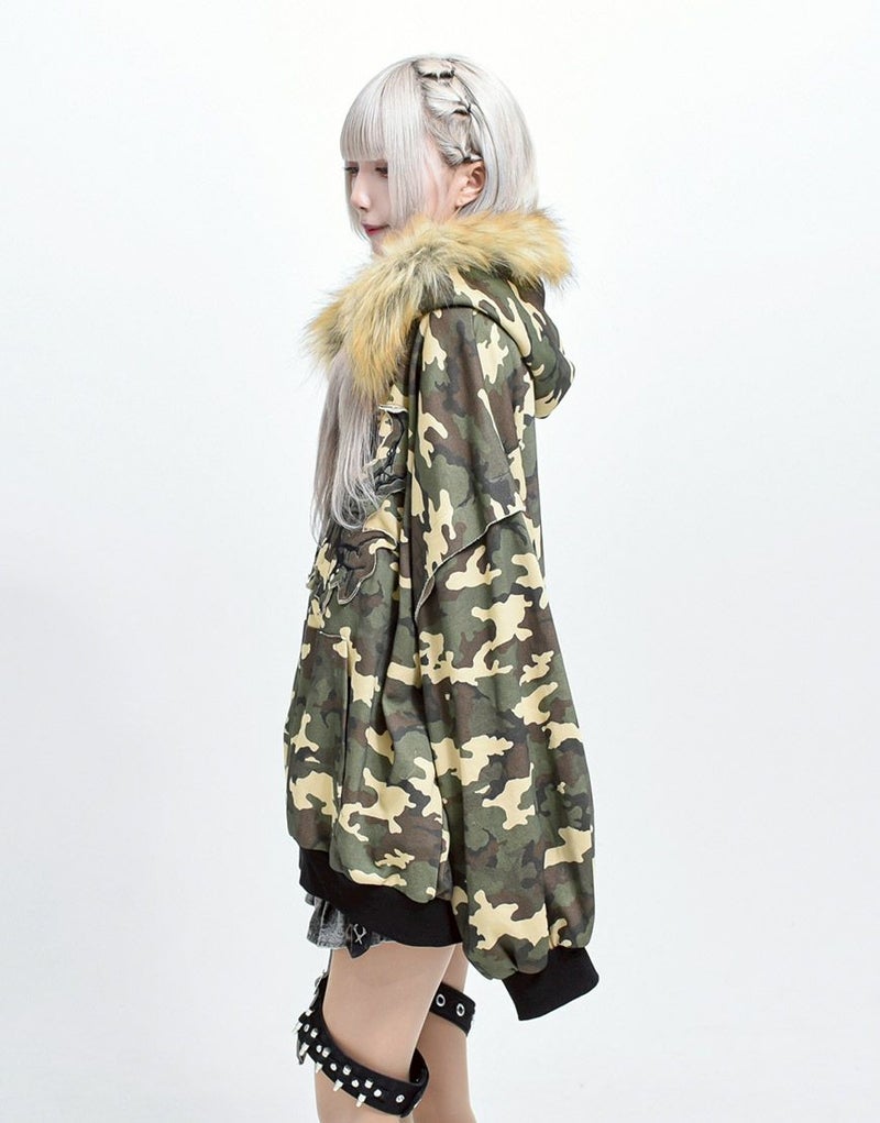 インクジェットによる鮮やかなプリント表現で、カモ柄やレオパード柄の陰影を立体的に描き出しています。