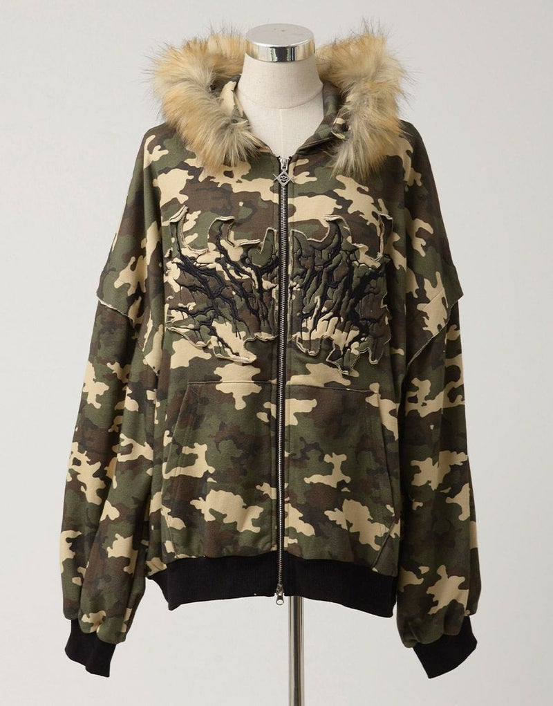 モード・サブカル・Y2Kスタイルまで幅広くマッチし、存在感を放つデザインパーカーです。