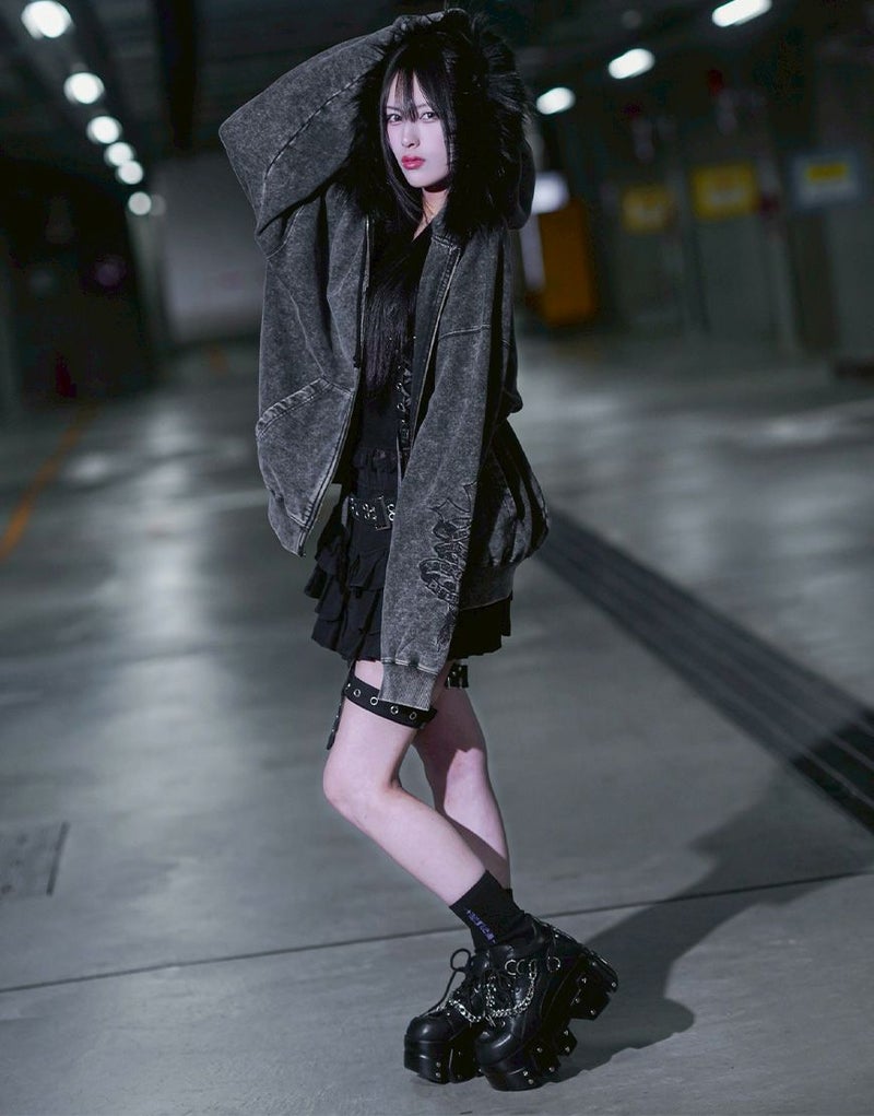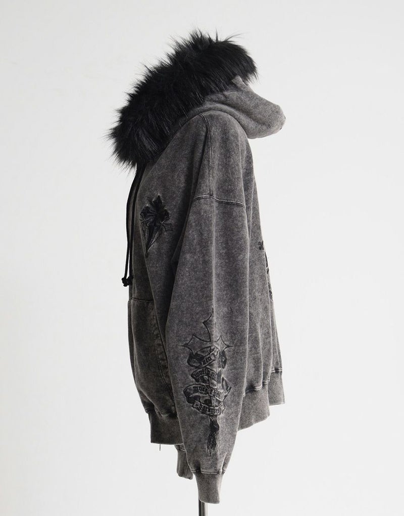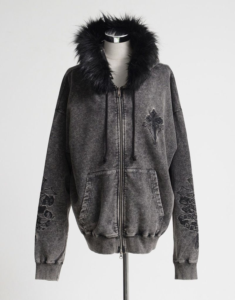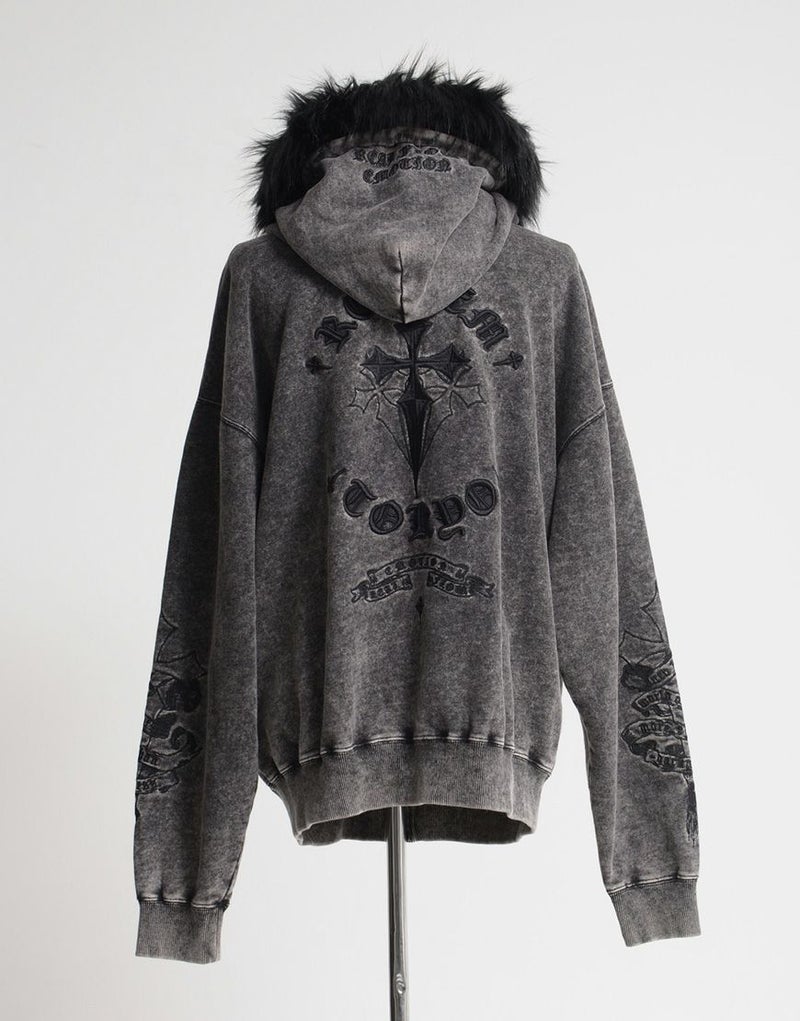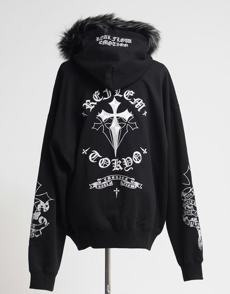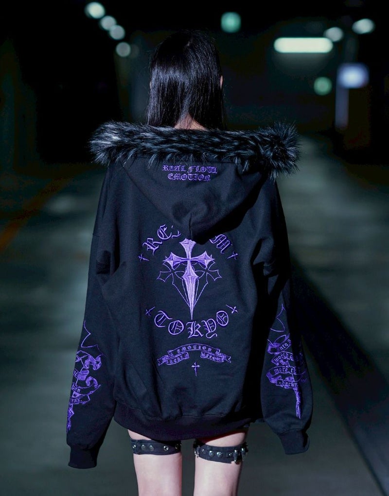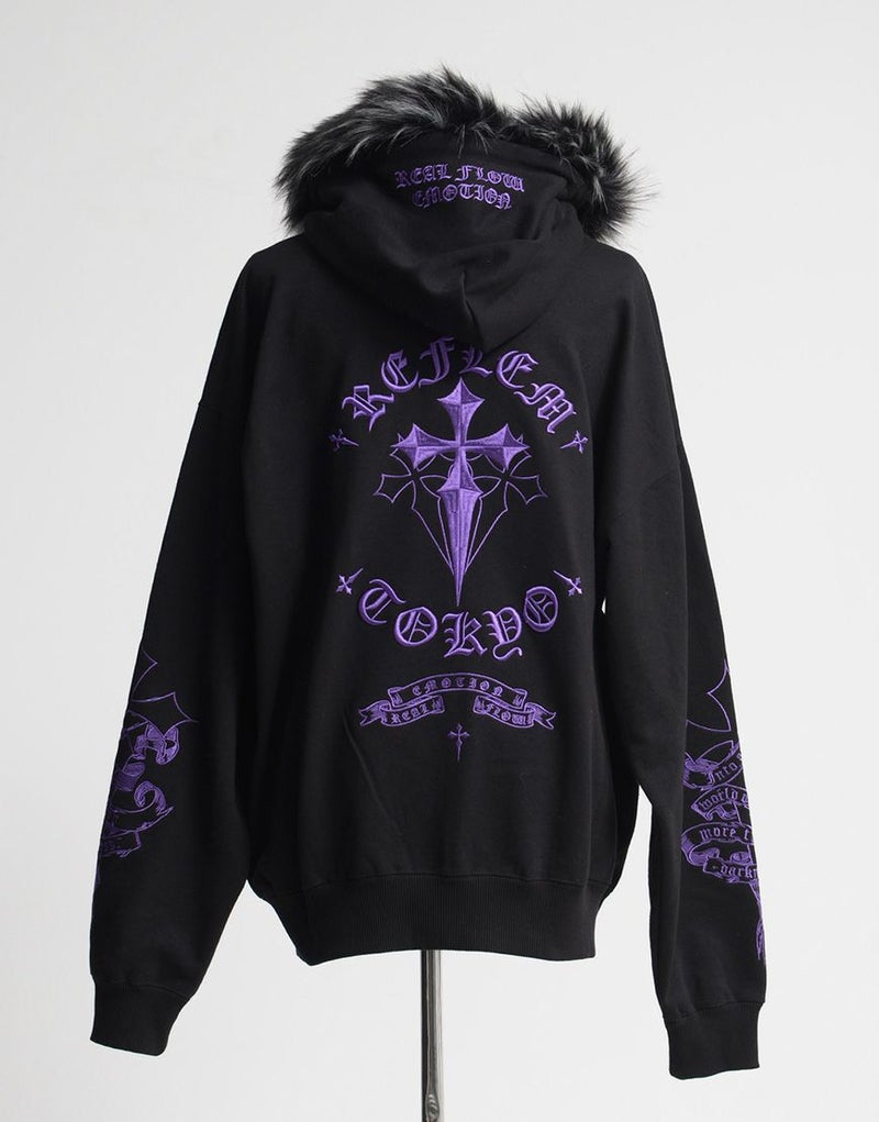 REFLEMらしいダークな世界観を存分に落とし込んだ、存在感抜群のファー付きジップアップパーカーが登場。
