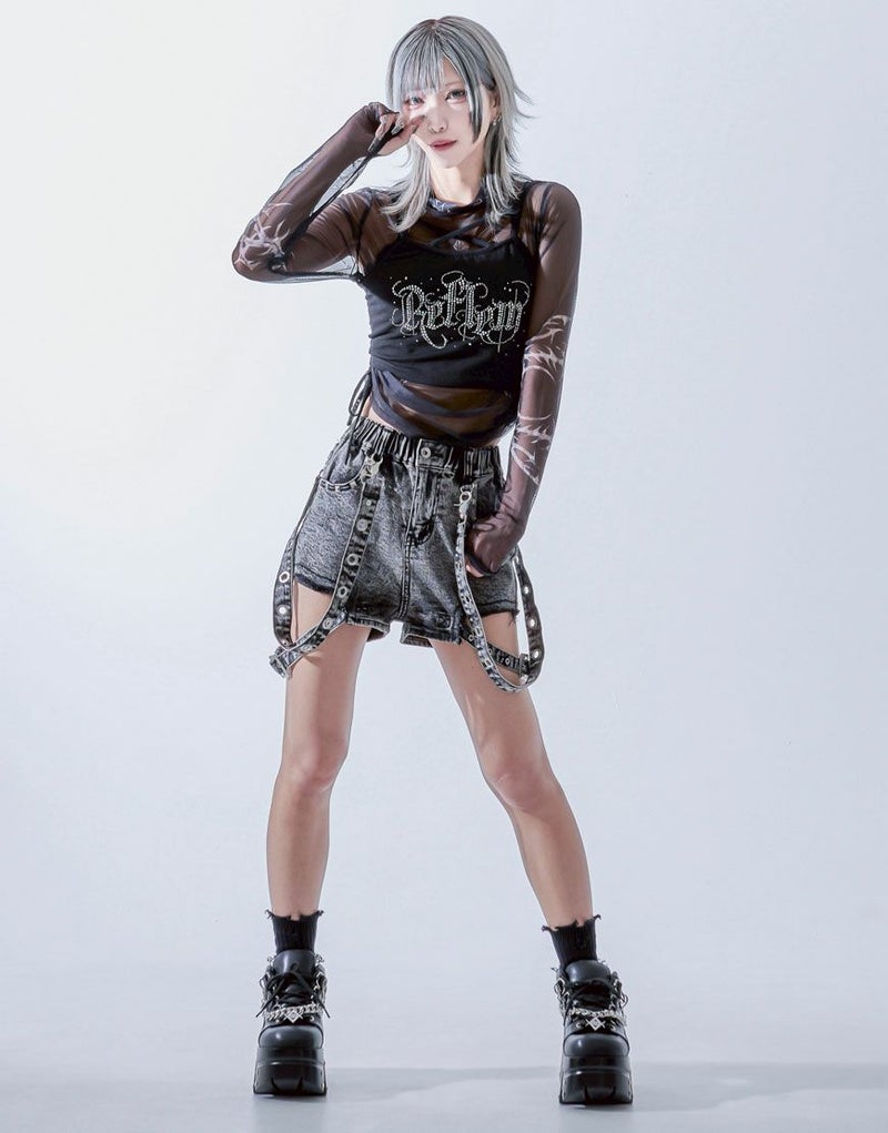 ボリュームのあるブーツや厚底スニーカーと合わせて、地雷系・サブカル系・Y2K系ファッションとの相性も抜群。Tシャツやビスチェ、ショート丈トップスなど、さまざまなアイテムと合わせやすい主役級ショートパンツです。